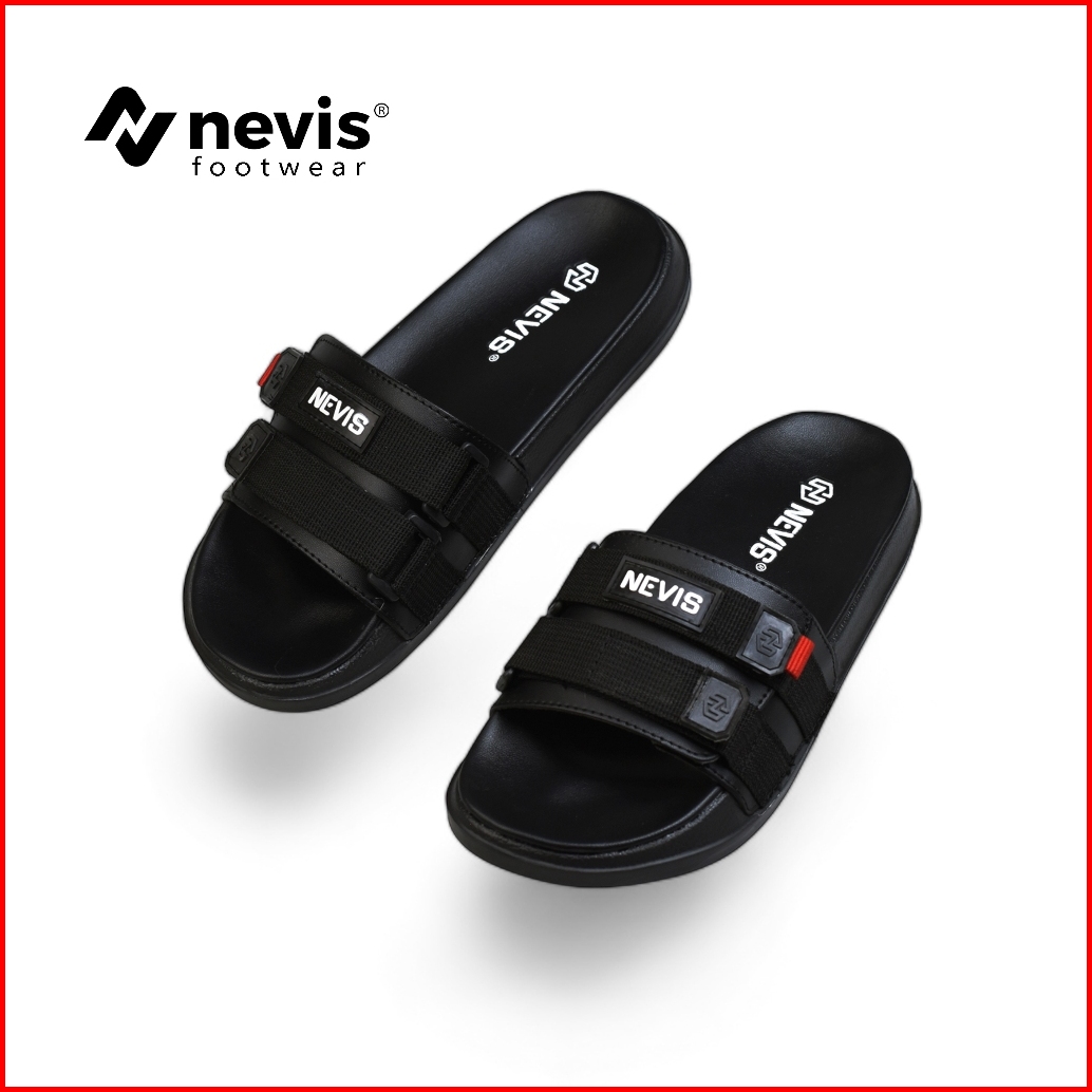 Nevis Gorka - Sandal Pria Slop Casual Slide Original Sendal Kasual Distro Pria Hitam