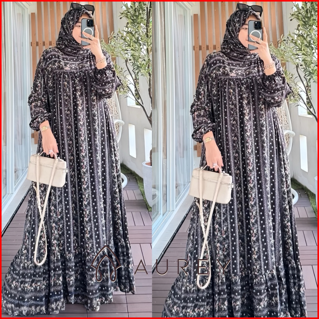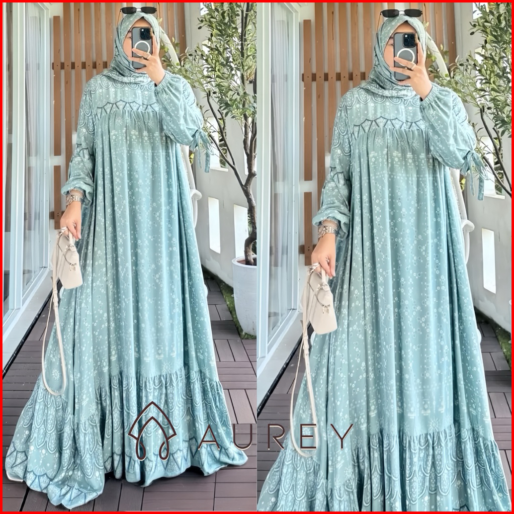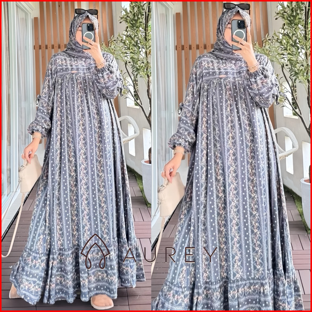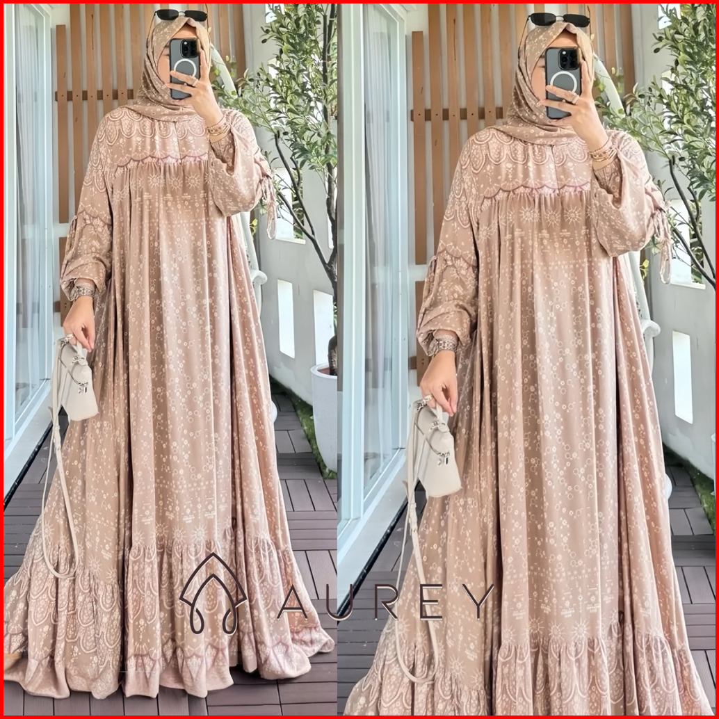 Aurey Set Hijab Gamis Viral Sarah Dress Raya Premium Gamis Rayon Setelan Hijab Wanita Busui