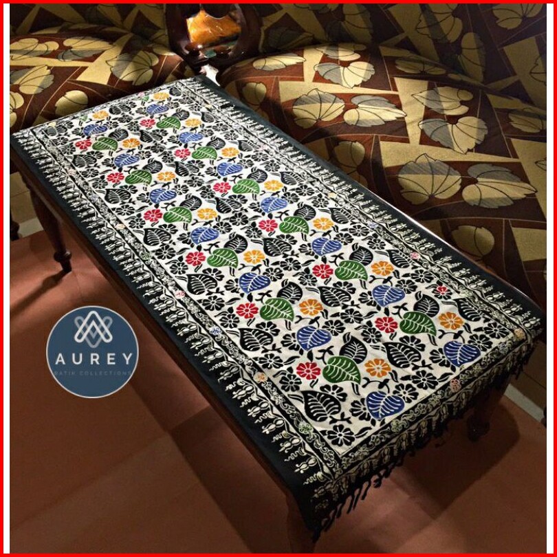 Taplak Meja Tamu Persegi Panjang Ukuran 50x120cm Motif Daun Sirih