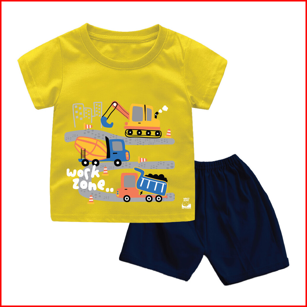 Naked Free Setelan Pendek Bayi Anak Laki-laki Excavator Series Work Zone Bahan Katun 30s