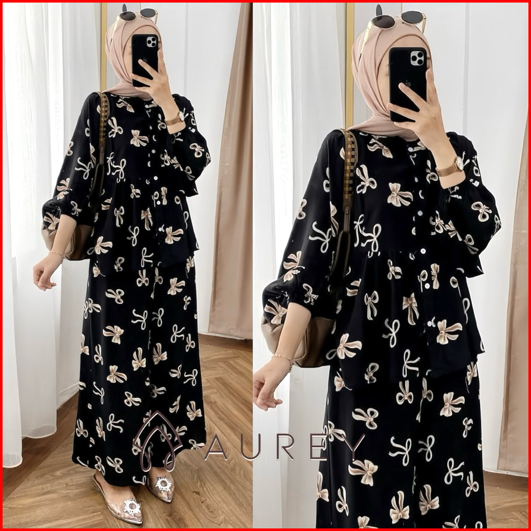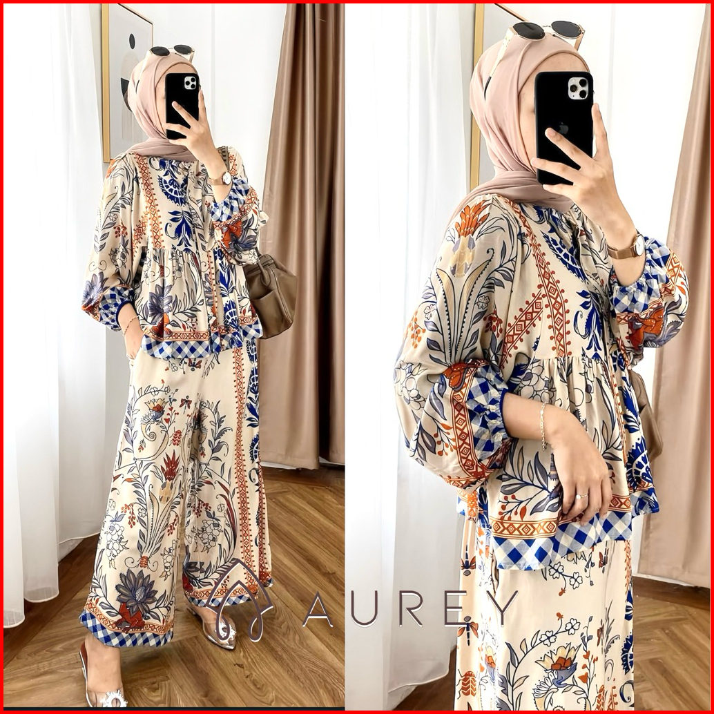 Aurey Oneset Rayon Mentari Setelan Tunik Wanita Busui Oneset Rayon Setelan Celana Semi Jumbo