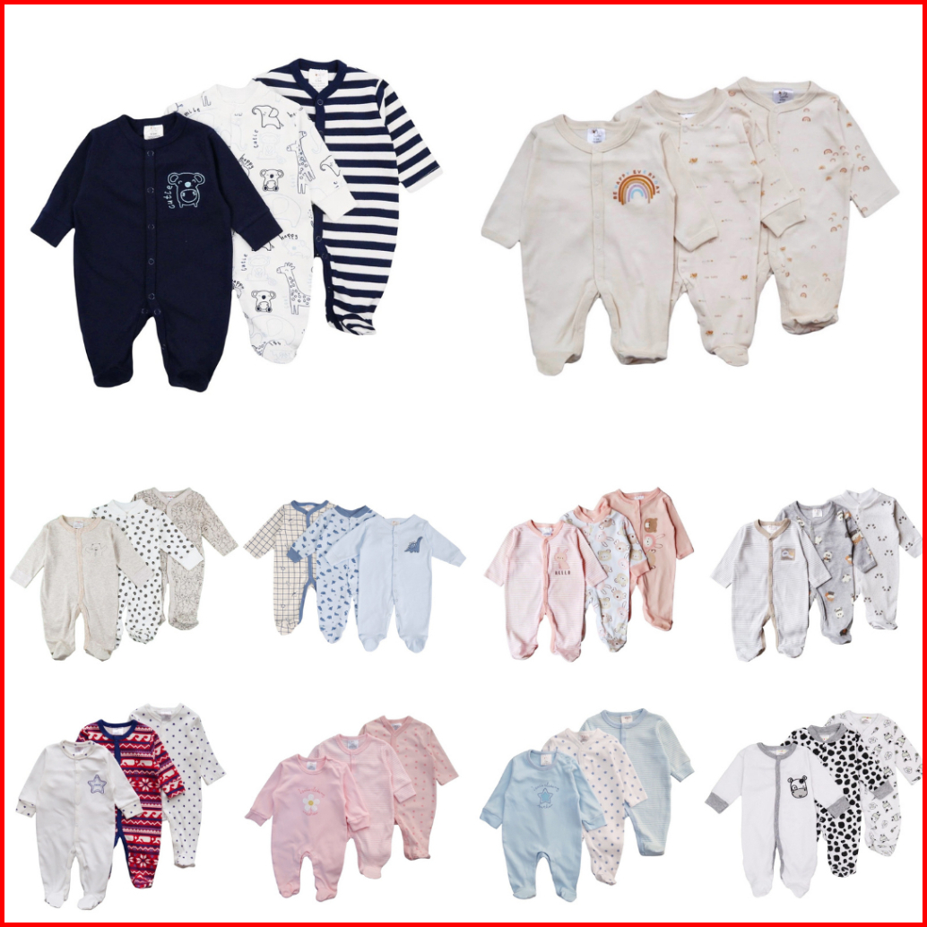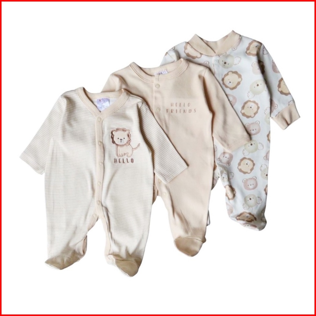 Babypotato - Sleepsuit 3pcs Bayi 0-9bulan Paket Baju Tidur Bayi Anak Jumper Panjang