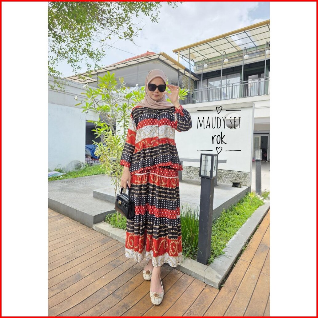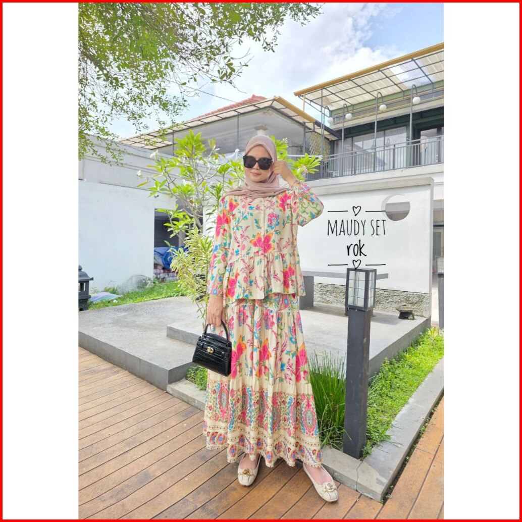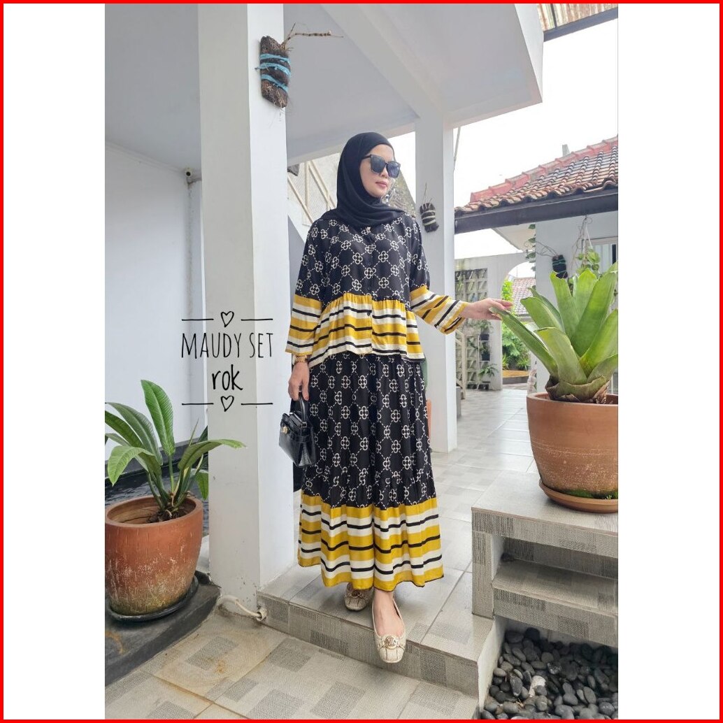 Maudy Set Rok Fashion Muslimah Wanita Rayon Viscose Motif Kekinian Busui Friendly Setelan Panjang