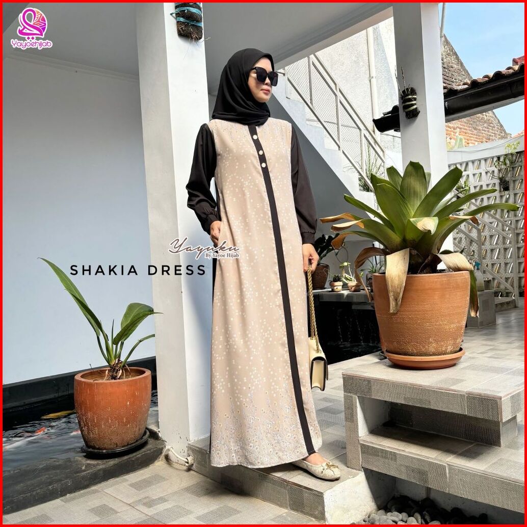 Shakia Dress Motif Kombinasi Bahan Isyana Mix Senorita Busui Friendly Dress Lebaran Yayuku