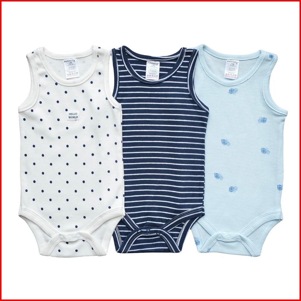 Babypotato - Sleeveless Bodysuit 3pcs Motif Polkaworld Jumper Kutung Bayi