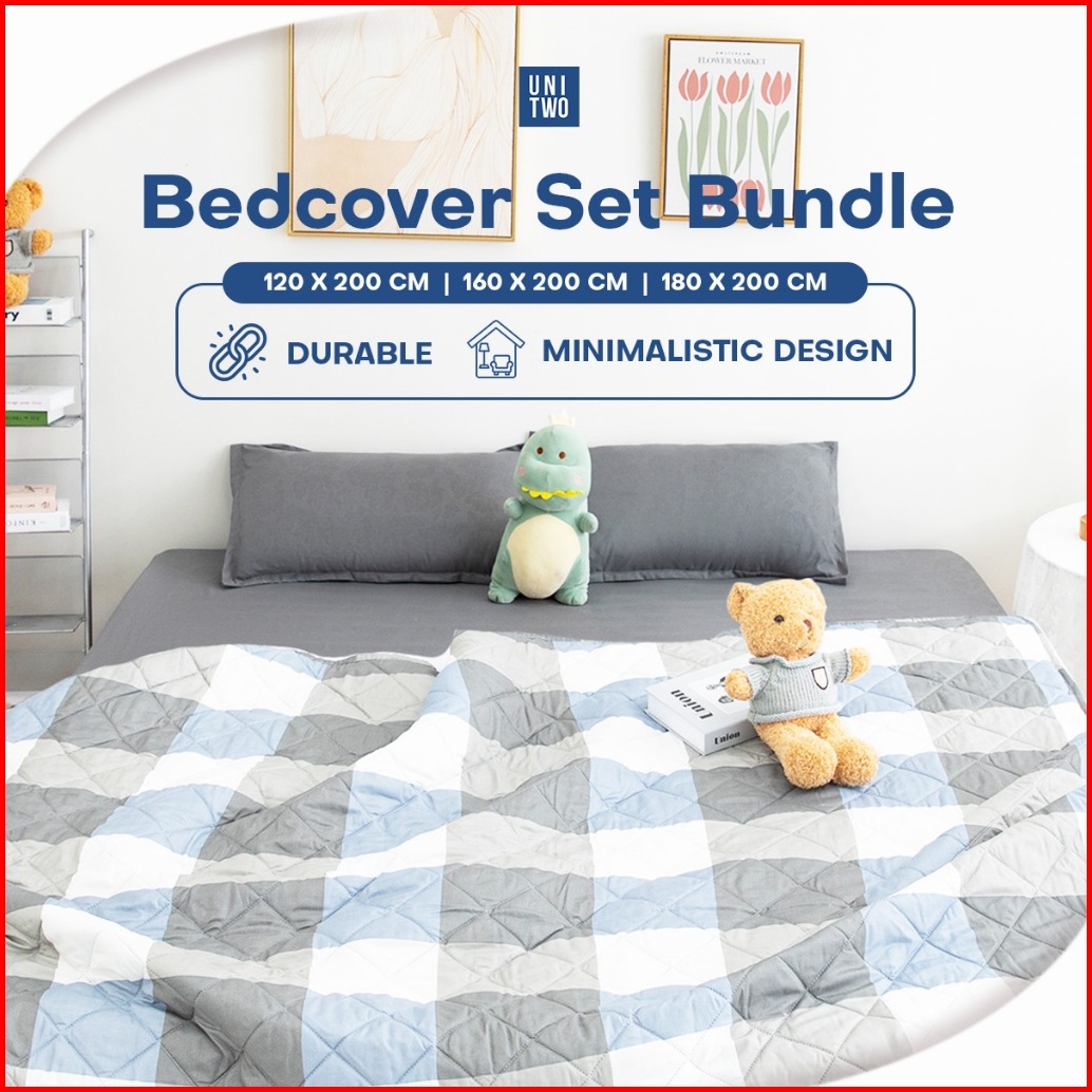 Unitwo Bed Cover Sprei Set Bed Cover Set Dengan Sprei Set Sarung Bantal Dan Sarung Guling Full Pressing Karet Keliling K