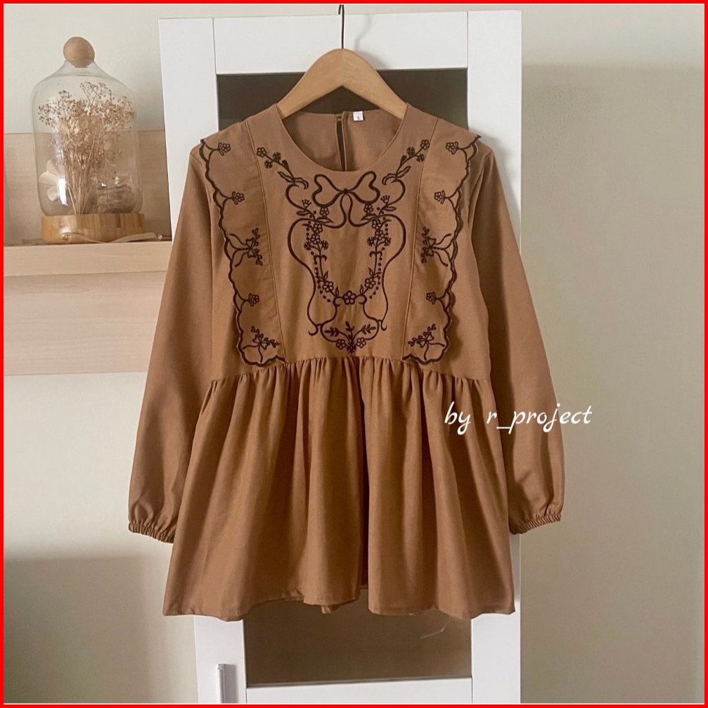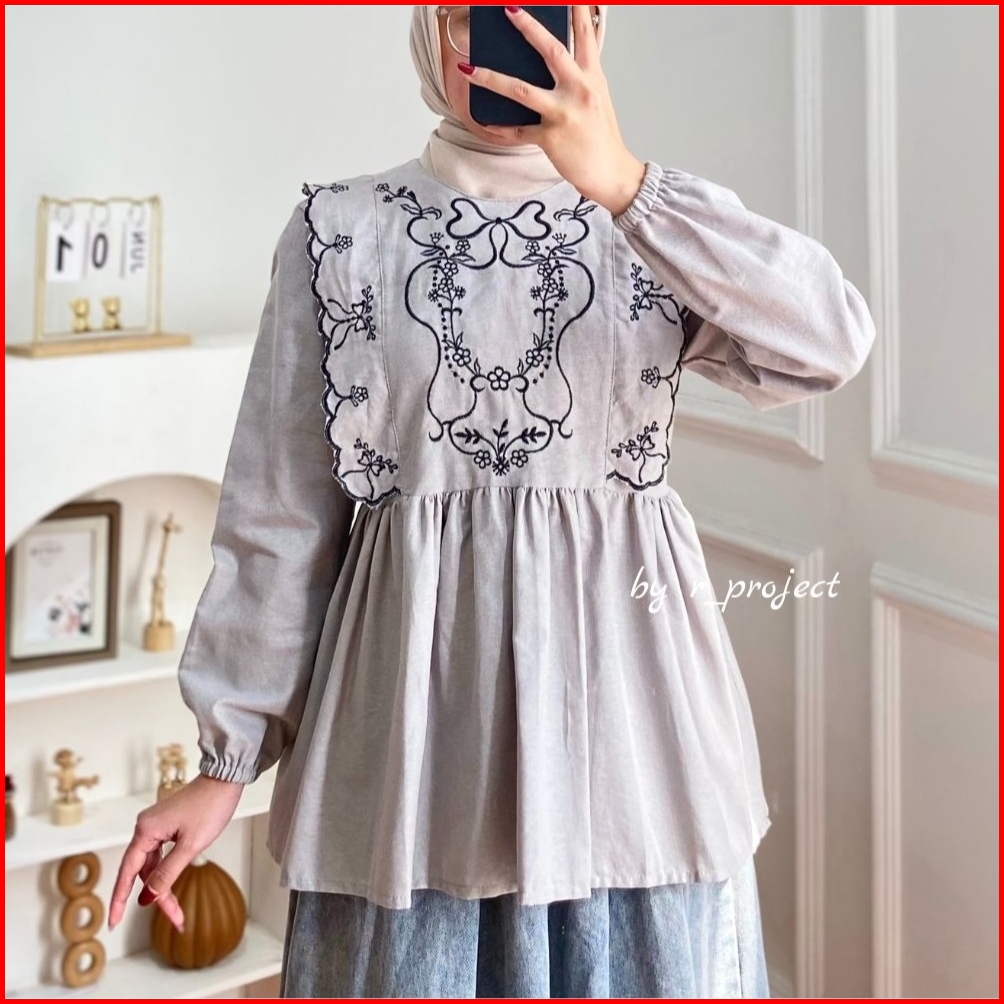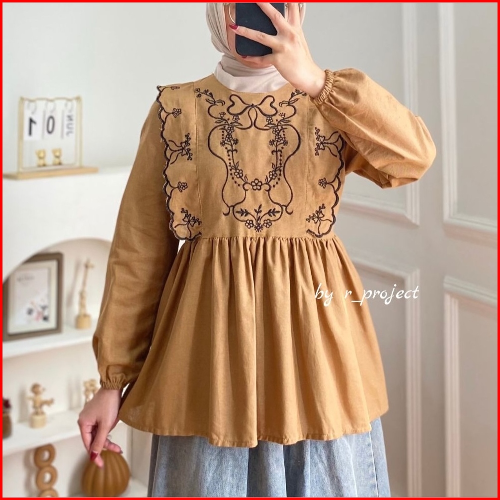 Peplum Blouse Atasan Wanita Bahan Linen Premium Blouse Wanita Baju Wanita Kekinian Atasan Bordir Korean Style R Project