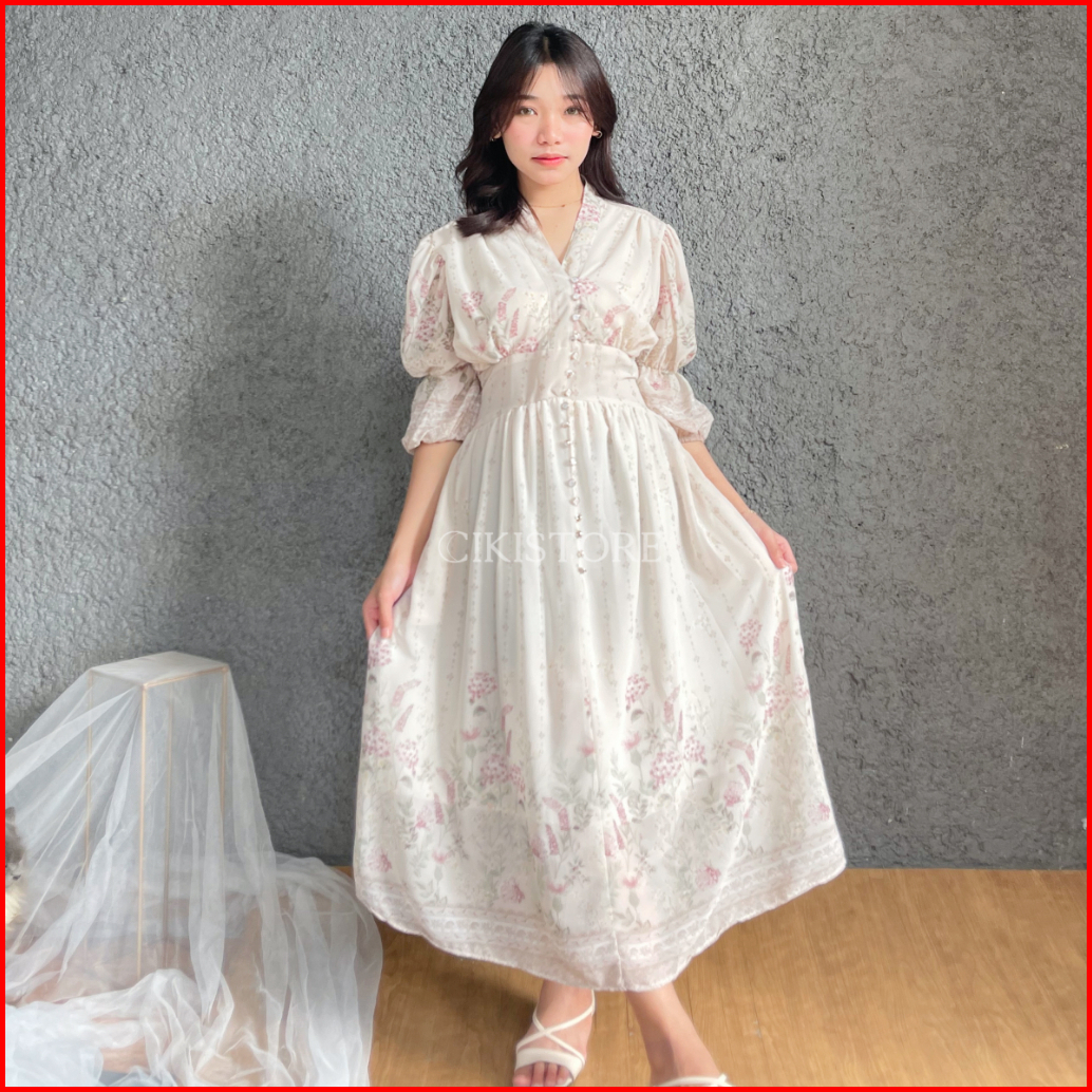 Cikistore - Ryabel Dress Wanita Casual Korean Long Dress Dress Wanita Flowy