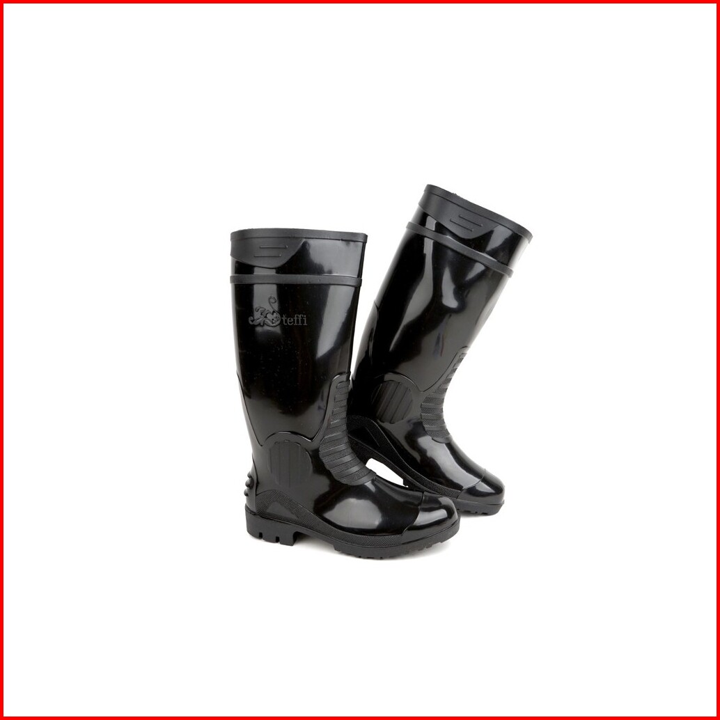 Sepatu Boot Tinggi Steffi Boots Pro Hitam Anti Slip Air Lentur Nyaman Ringan Lokal Karet Perkebunan