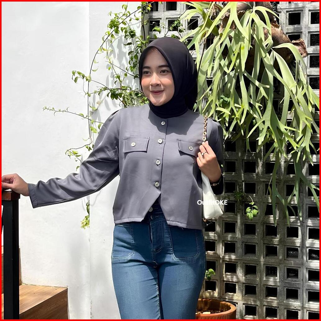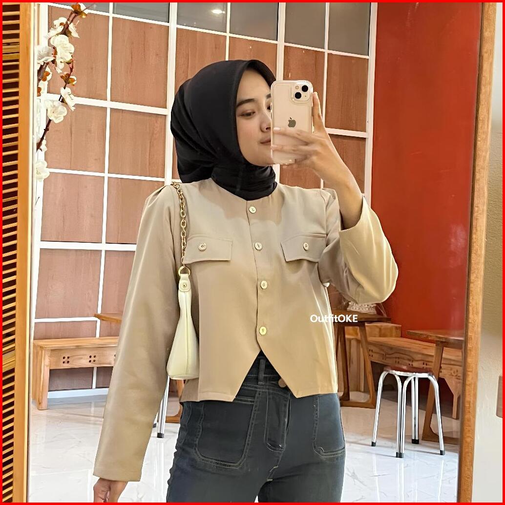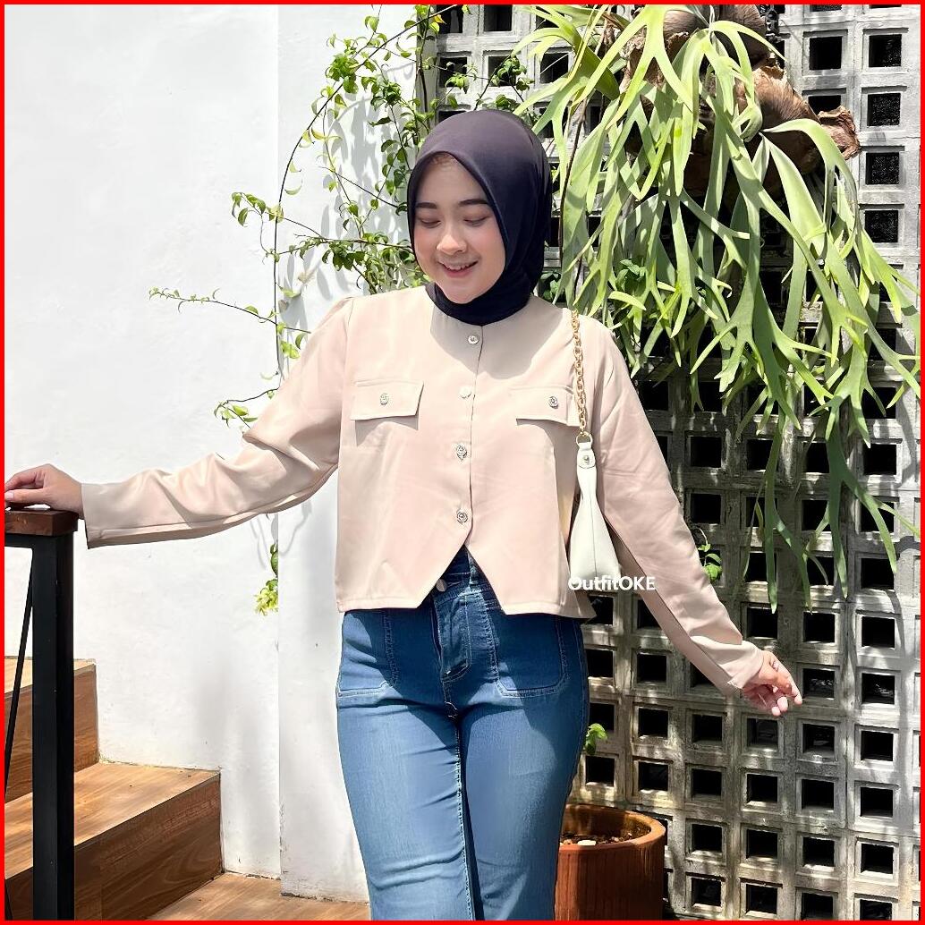 Blazer Crop Wanita - Elena Outer Basic Wanita Luaran Top - Atasan Wanita Basic Lengan Panjang