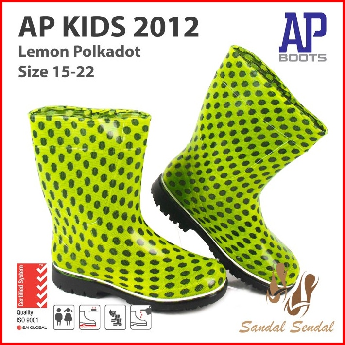 Sepatu Boot Anak Ap Boots 2012 Lemon Polkadot - Sepatu Boot Karet Anti Air Slip Ringan Nyaman Lentur