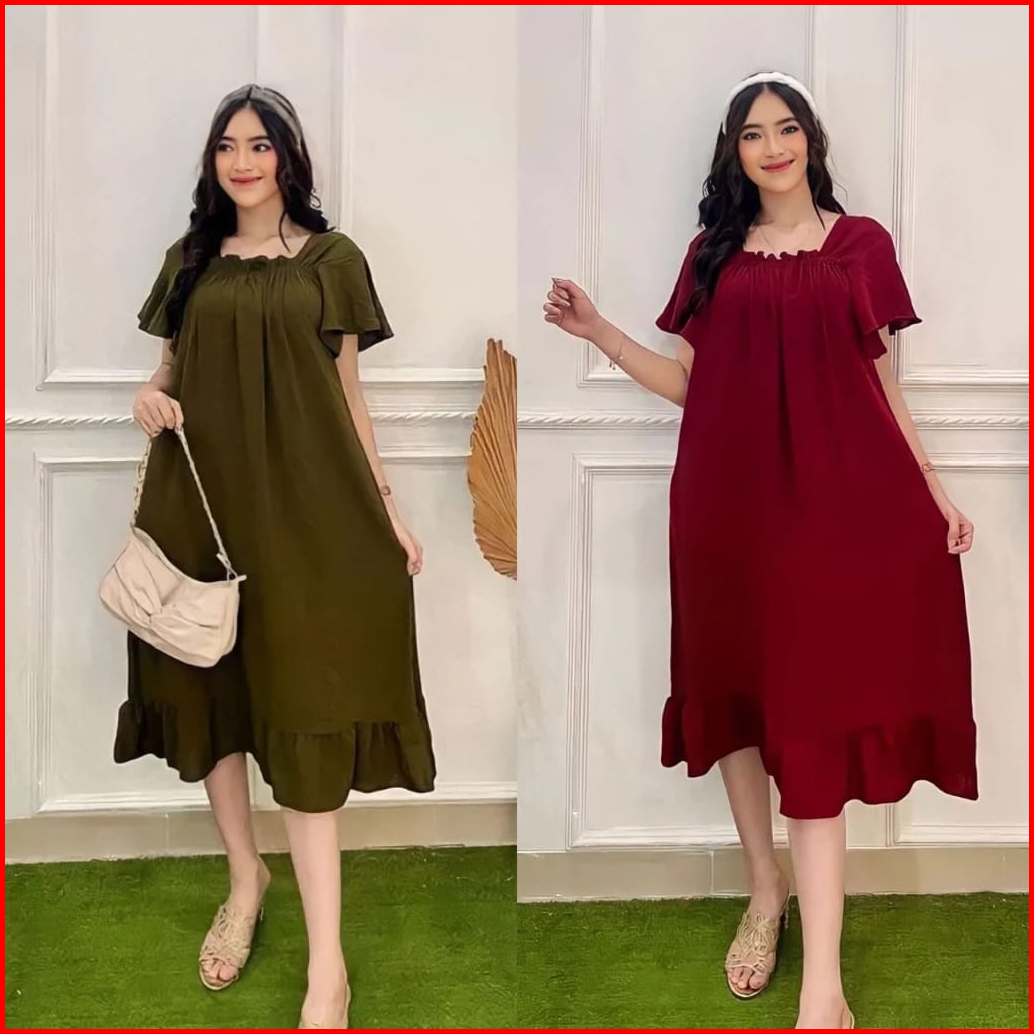 Rx Fashion - Daster Dress Fuji Crincle L - Xxl Daster Midi Zara Crincle Dress Airflow Cringkle Premium -pn