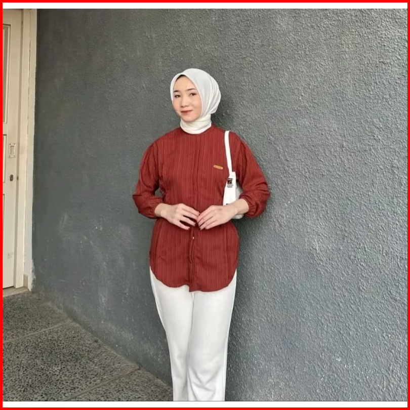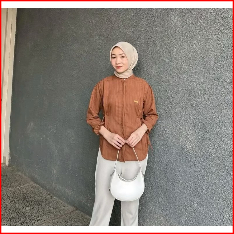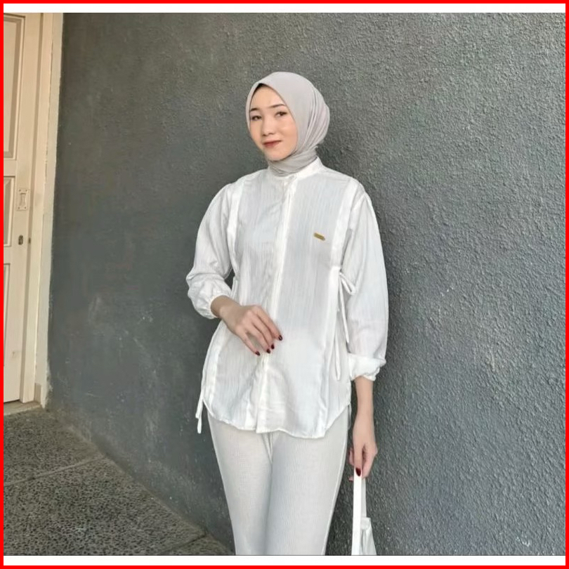 Kemeja Naura Tali Samping Bahan Ladycrush Kemeja Wanita Over Size