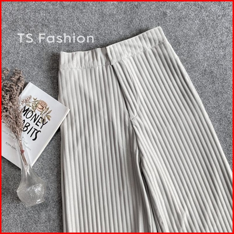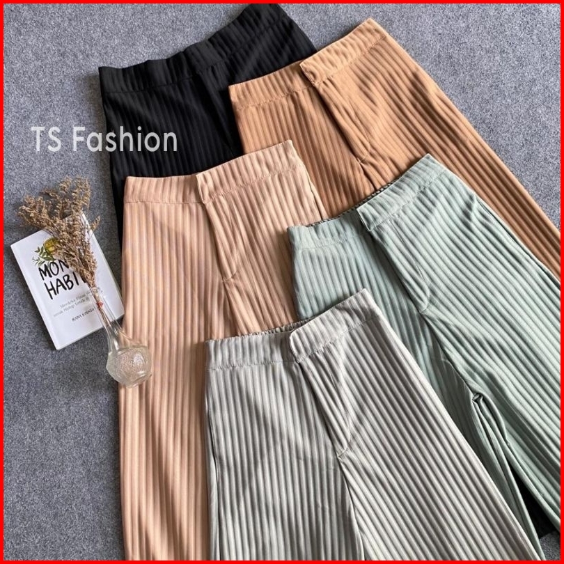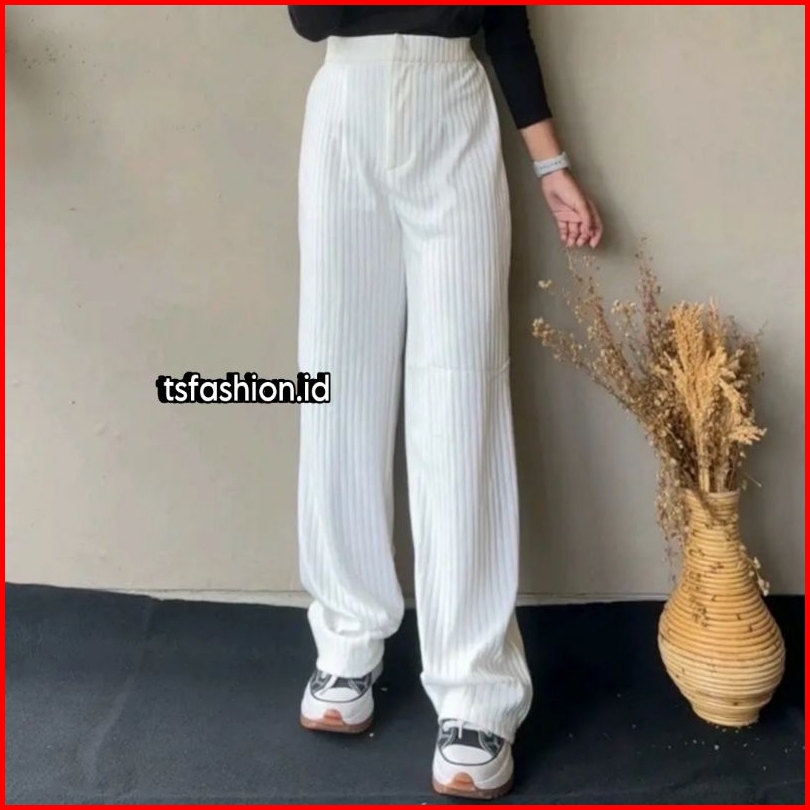 Ts Fashion - Celana Kulot Knit Rib Panjang - Knit Pants - Loose Pants Highwaist Kulot Panjang Basic Korean Style