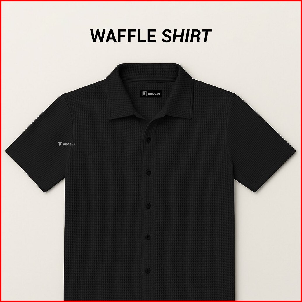 Broguy Kemeja Pria Casual Lengan Pendek Waffle Knit Slimfit - Black