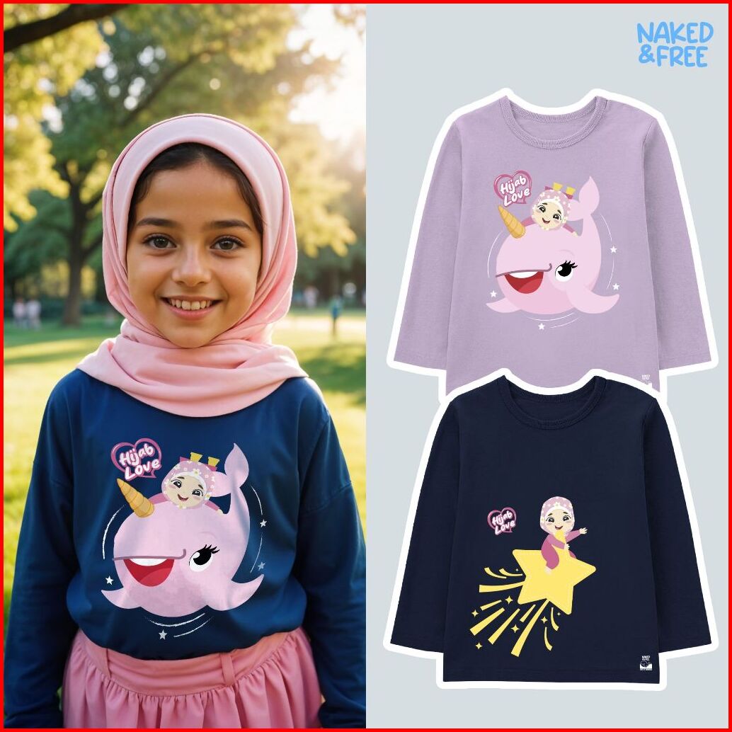 Naked Free Baju Kaos Lengan Panjang Anak Perempuan Hijab Love Series Play With Uniwhal Bahan Katun