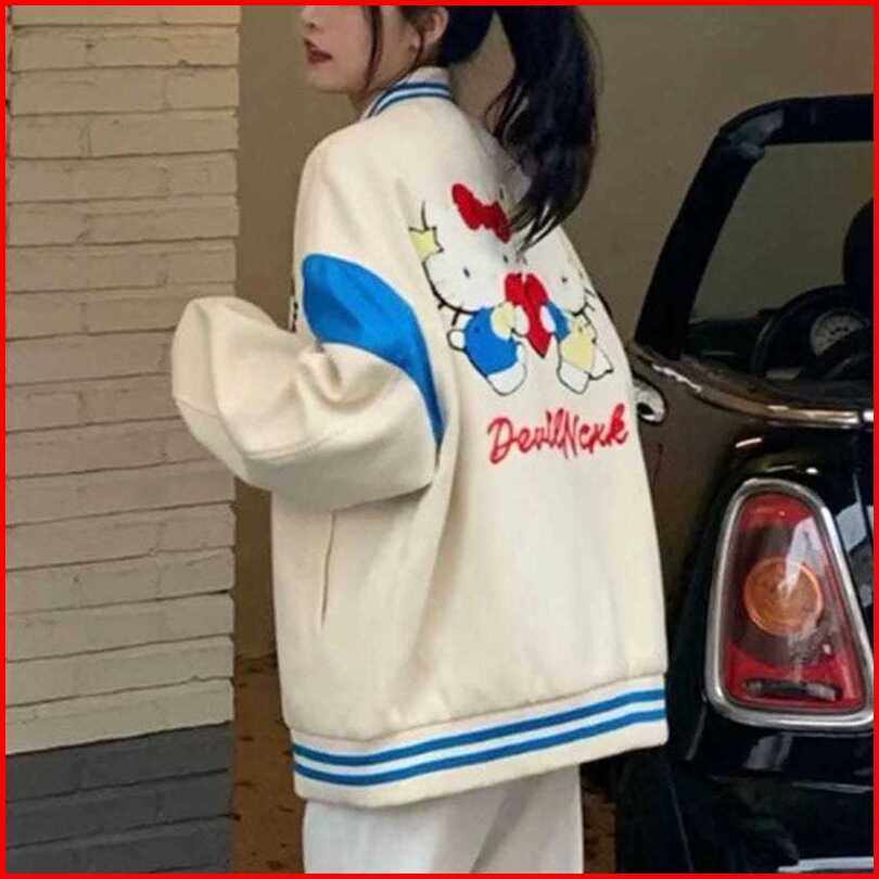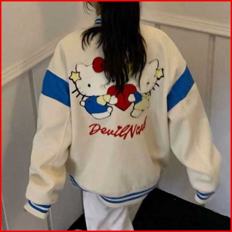 Clara Jaket Varsity Full Bordir Hello Kitty
