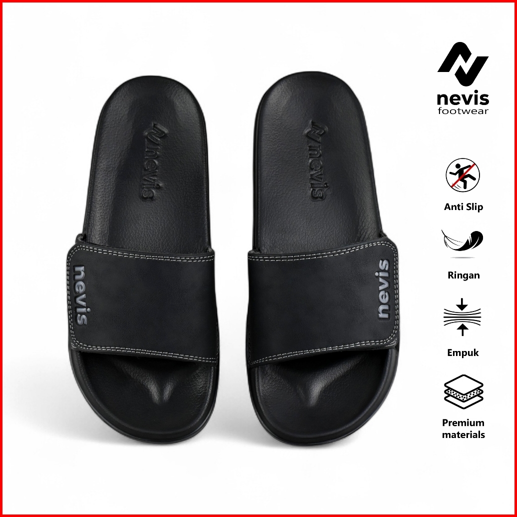 Nevis Sandal Slop Pria Slip On Slide Sendal Selop Casual Kulit - Luxe