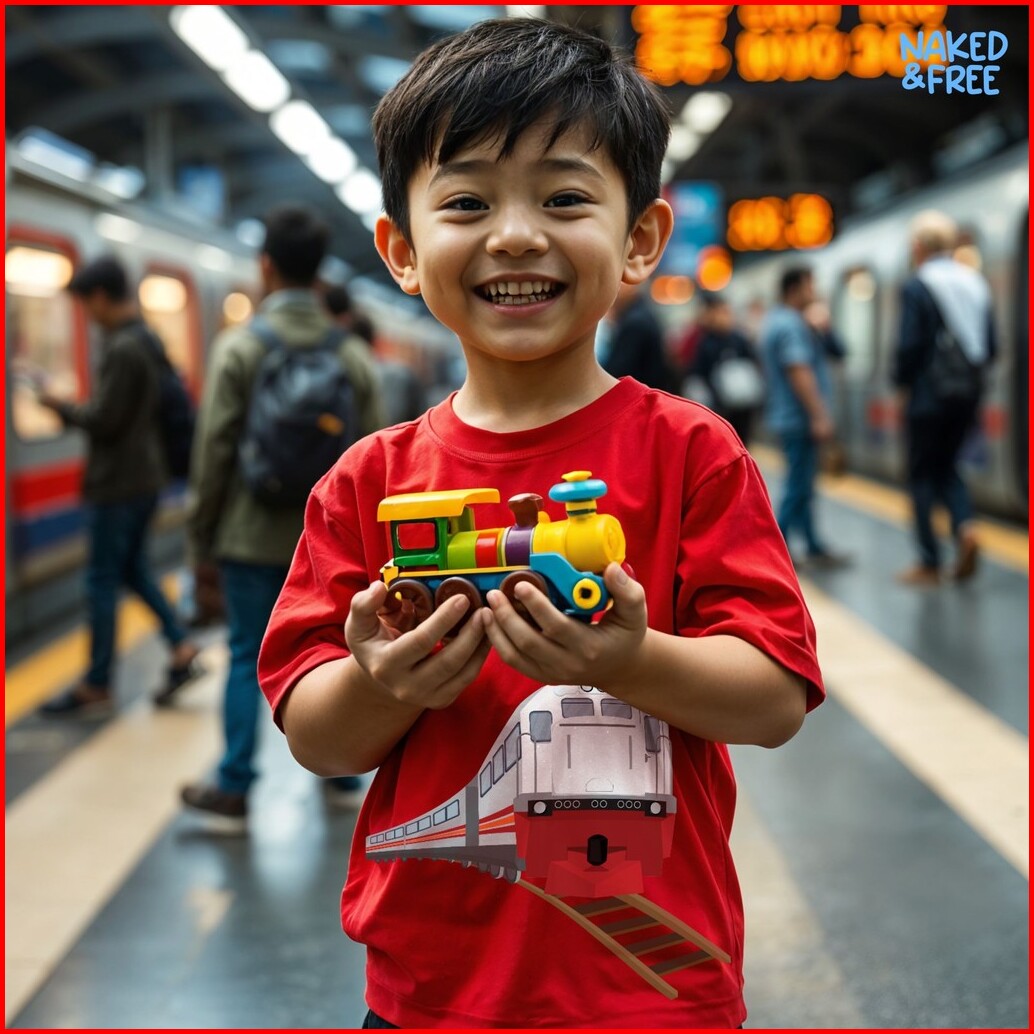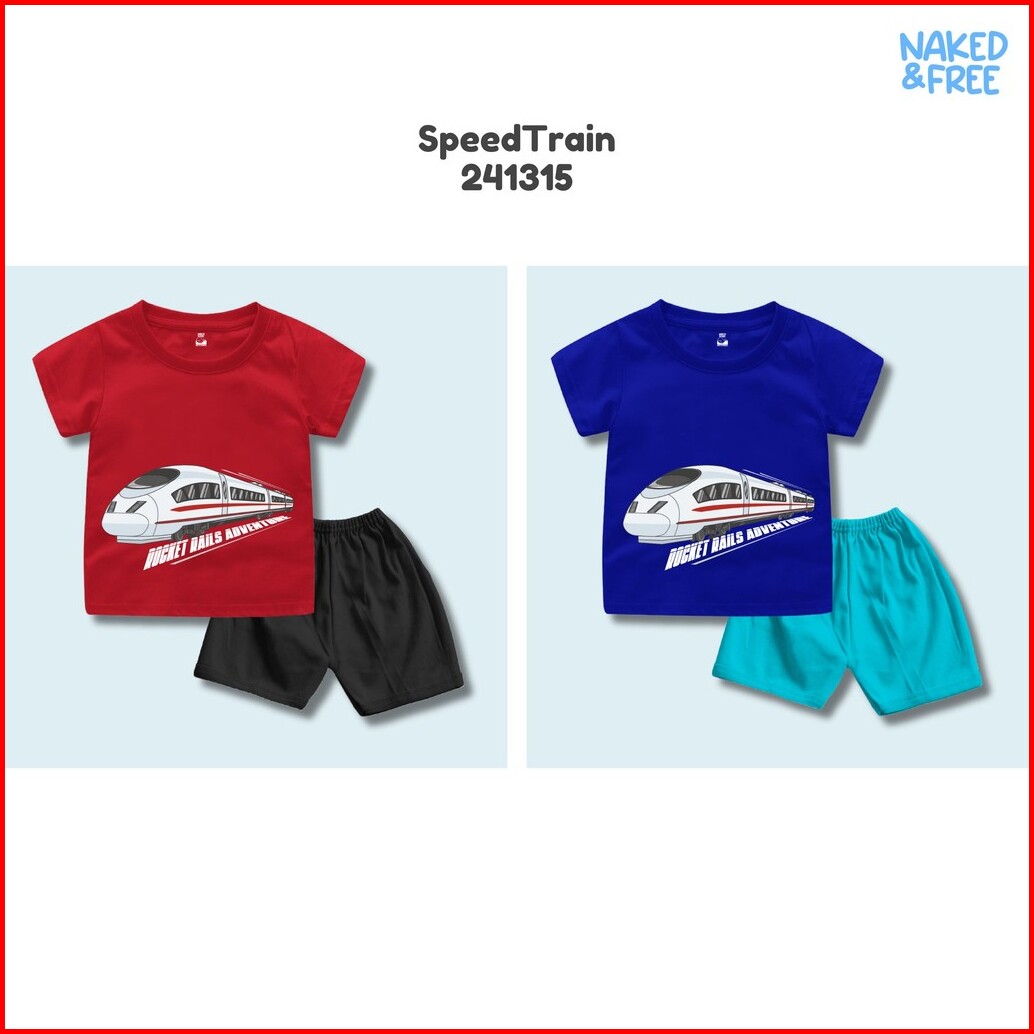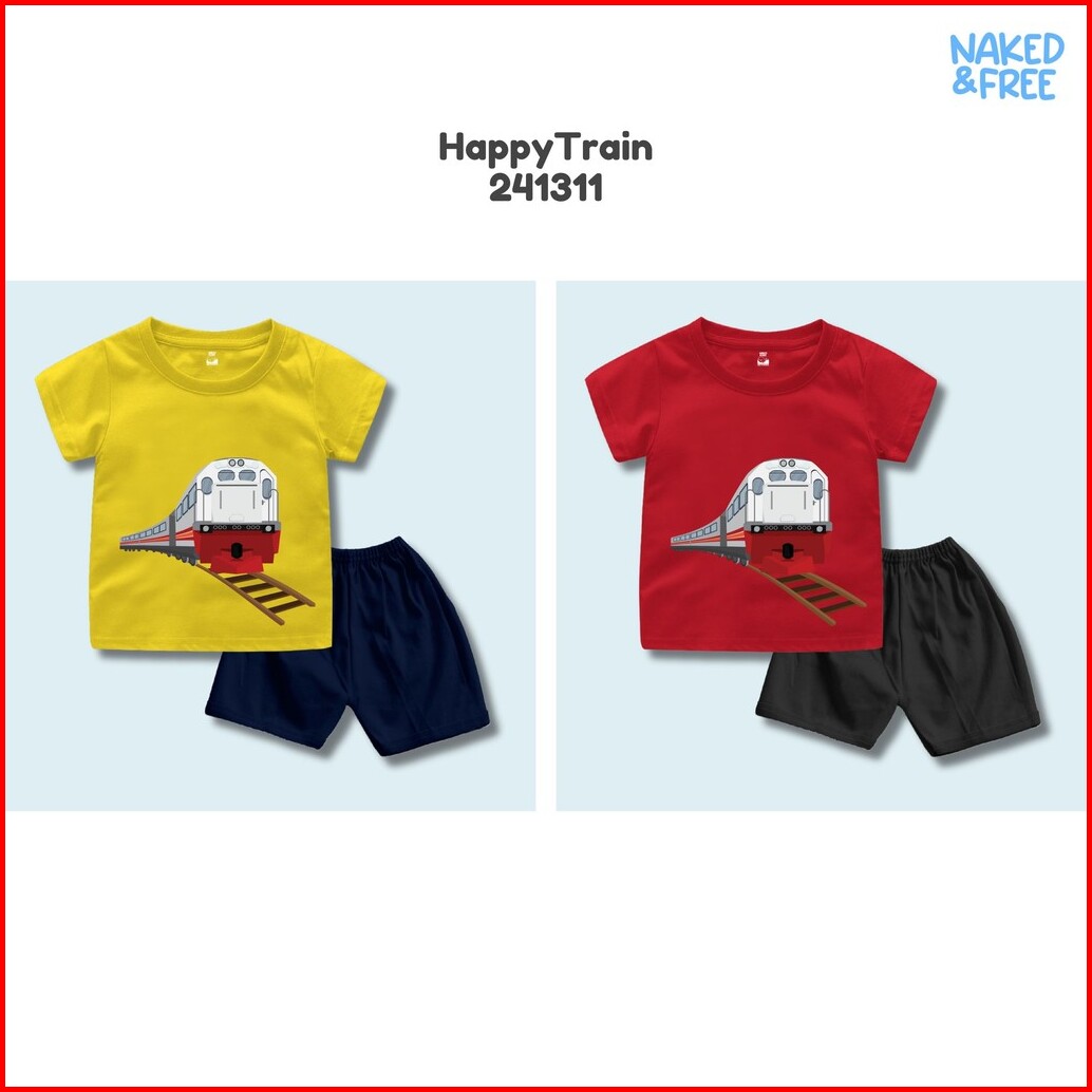 Naked Free Setelan Pendek Bayi Anak Laki-laki Transport Series Fun Train Ride Bahan Katun 30s