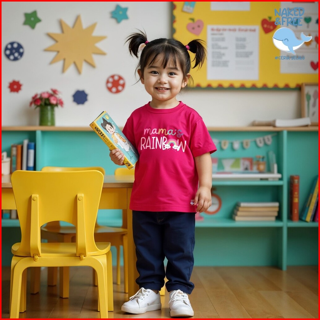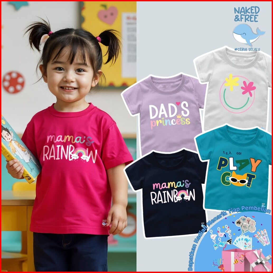 Naked Free Baju Kaos Anak Perempuan Mama Smile Rainbow Back To School Katun Combed 30s Bts-1
