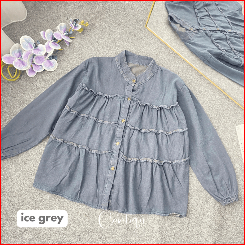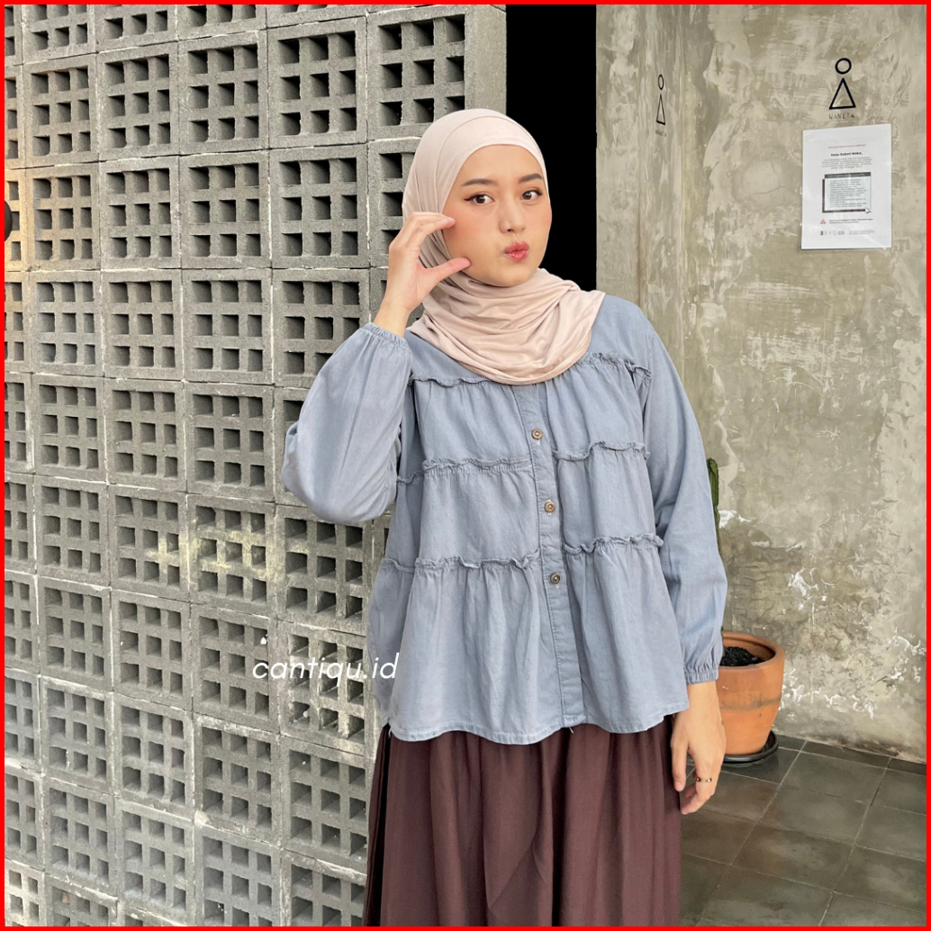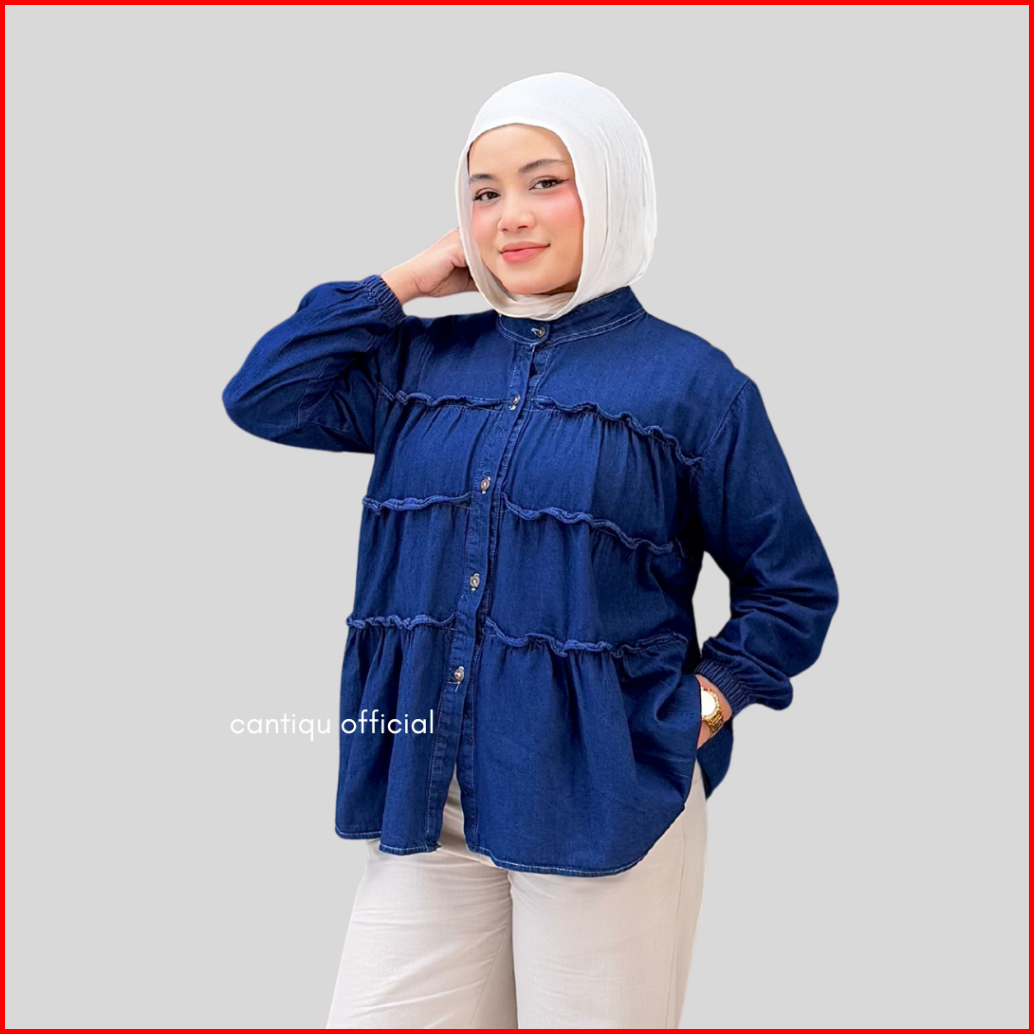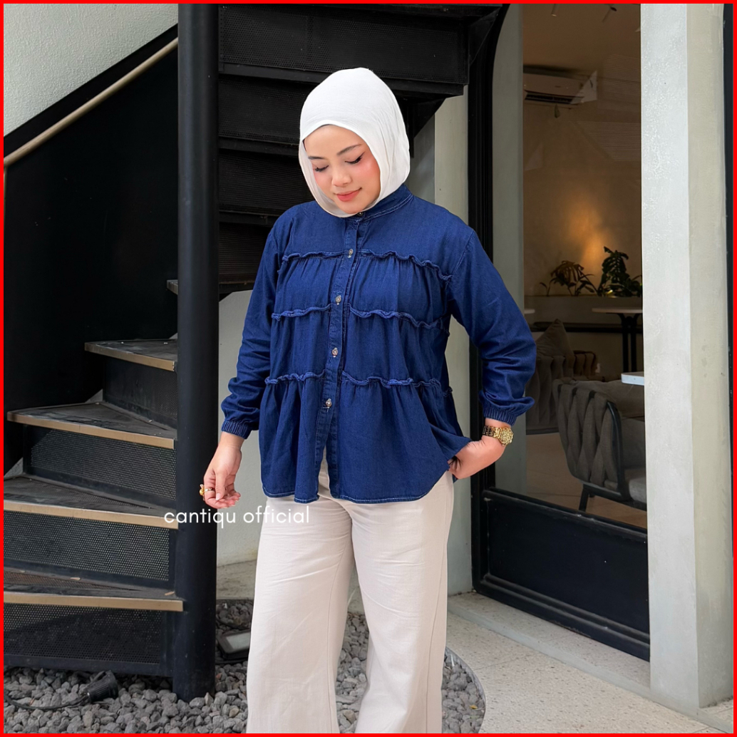 Cantiqu - Arabel Blouse Kemeja Rample Jeans 6oz Lengan Panjang
