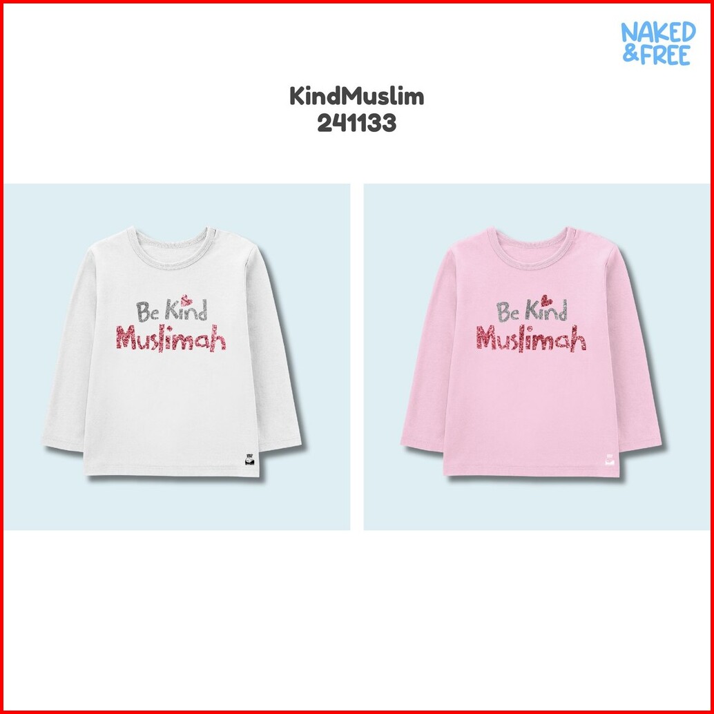 Naked Free Baju Kaos Lengan Panjang Anak Perempuan Muslim Series Allah First Be Kind Bahan Katun