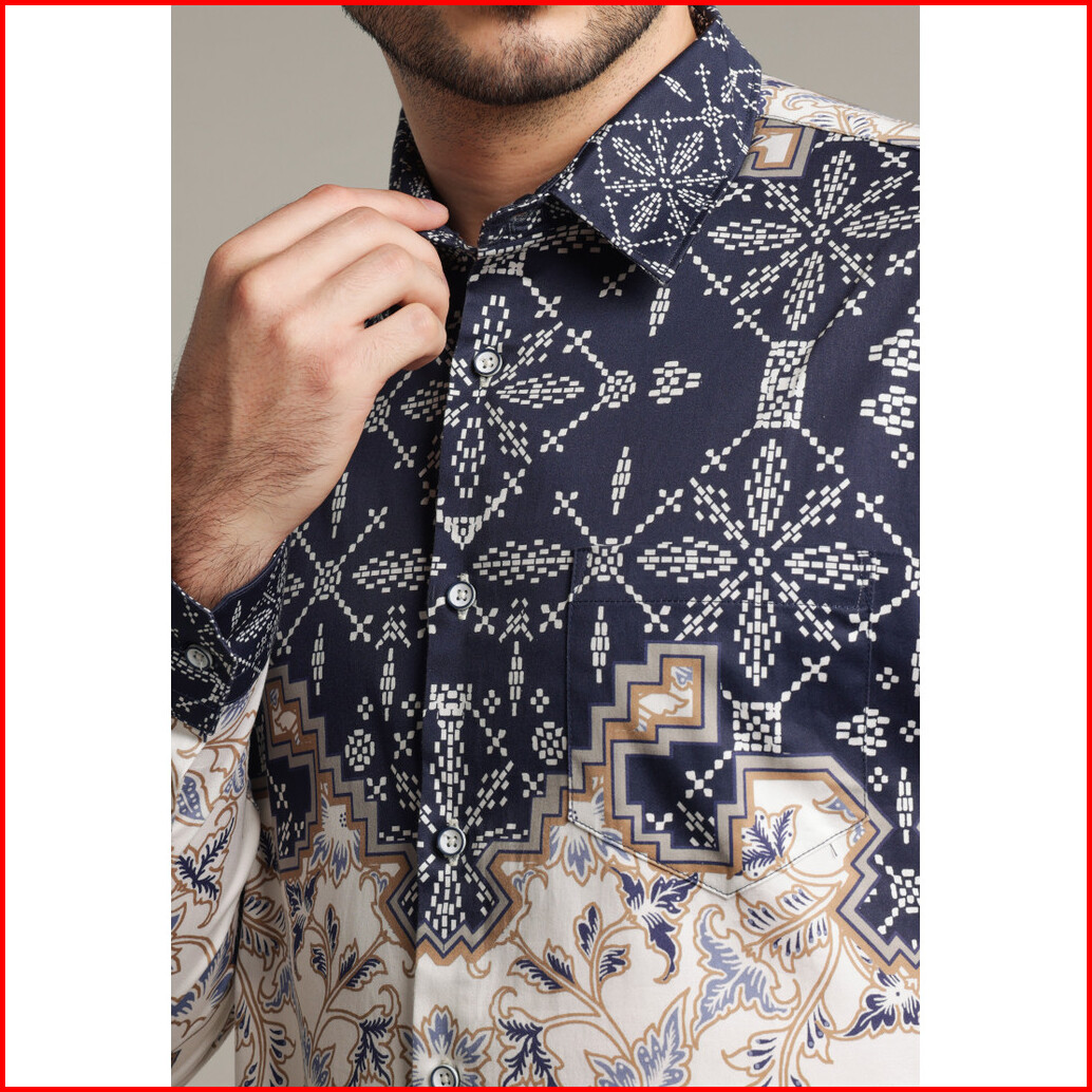 Moc - Kemeja Batik Pria Lengan Panjang Bhaskara - Beige