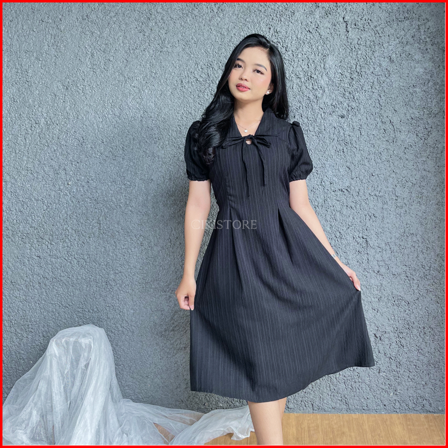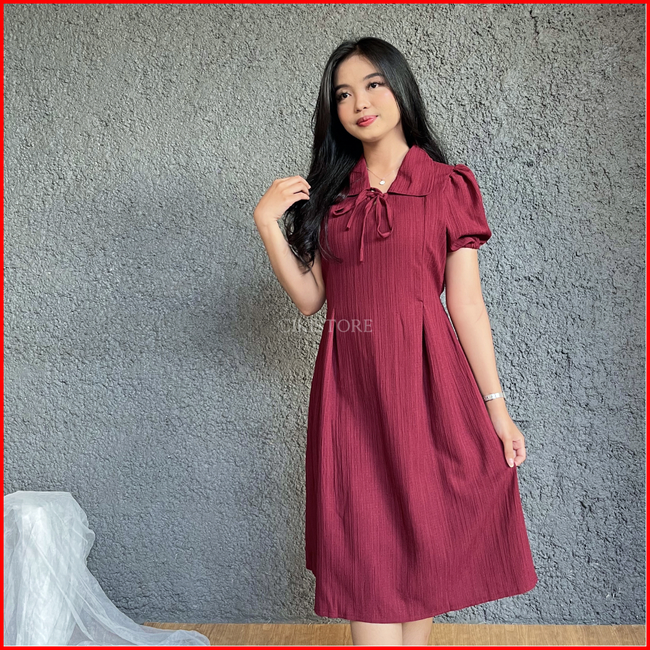 Cikistore - Alea Dress Midi Korean Style Casual Gaun Pesta Wanita Dailywear Dress
