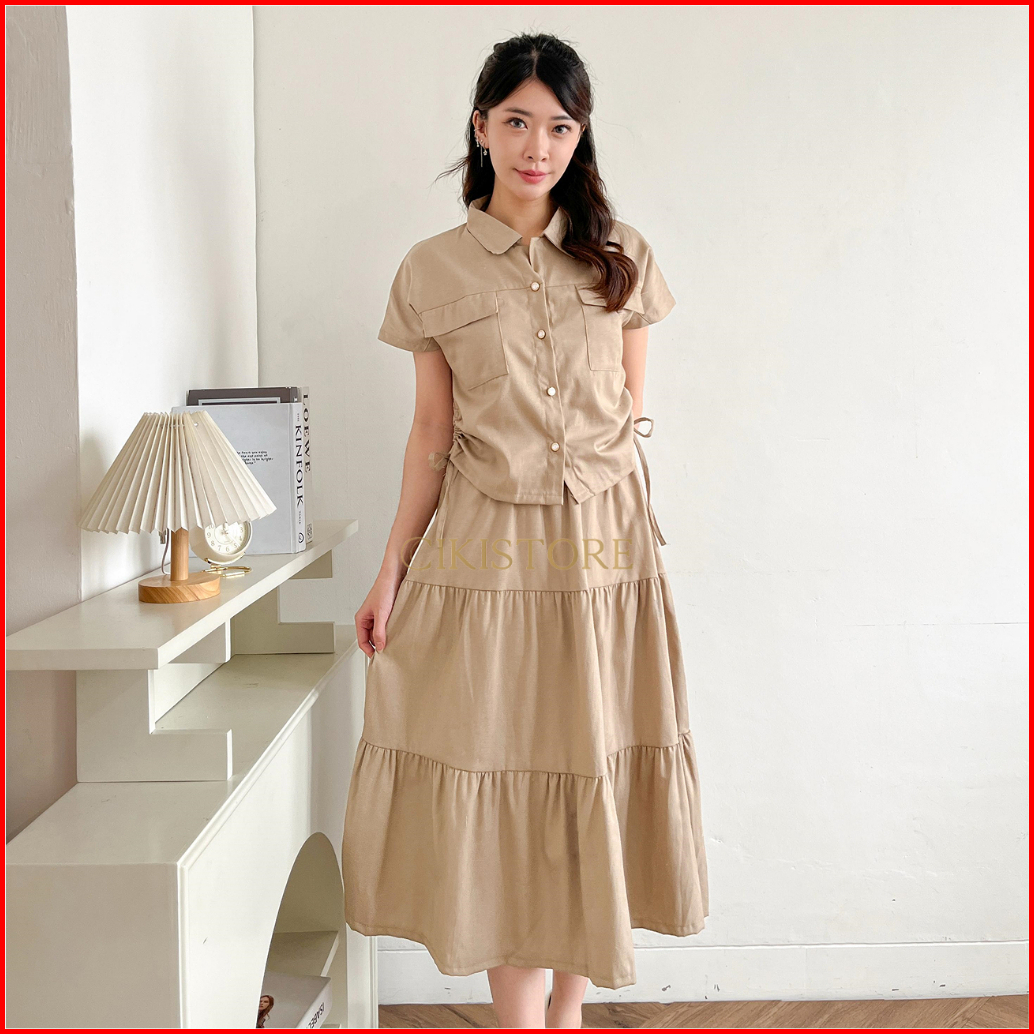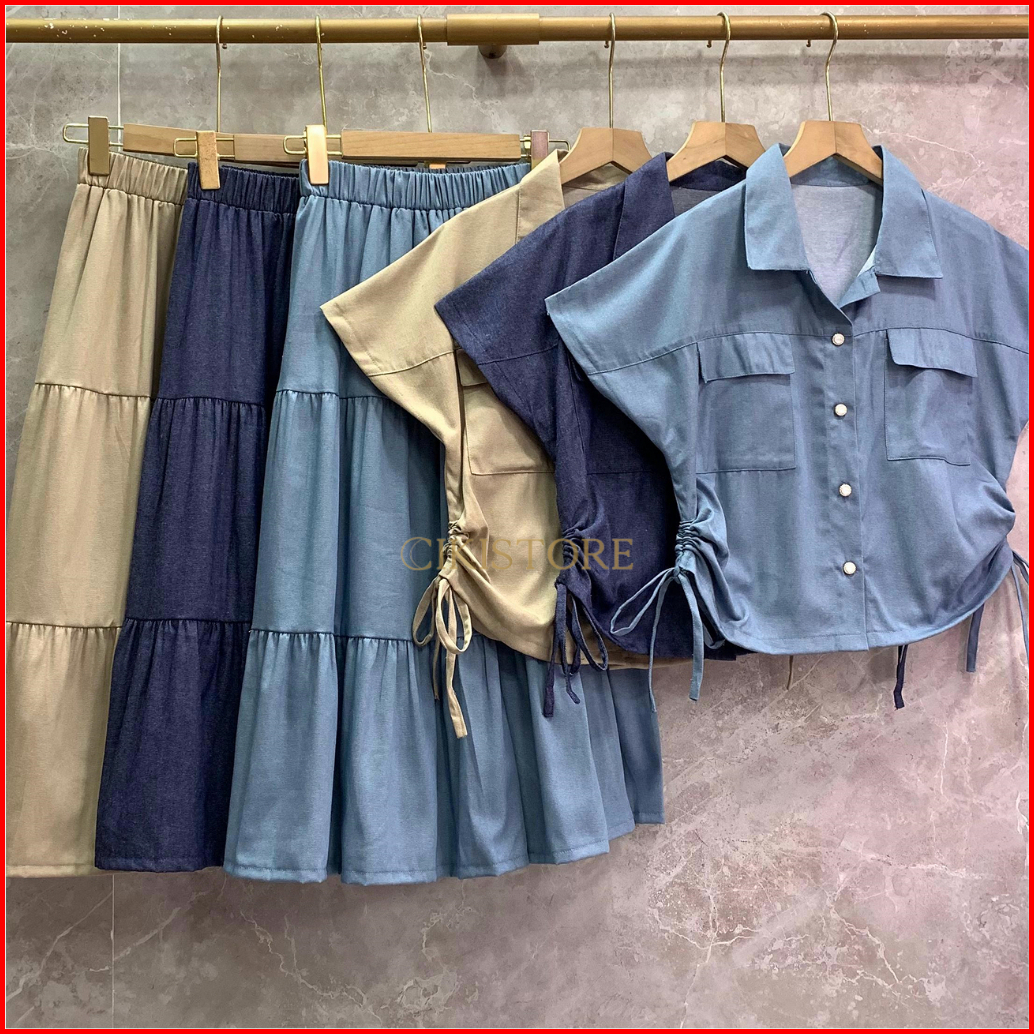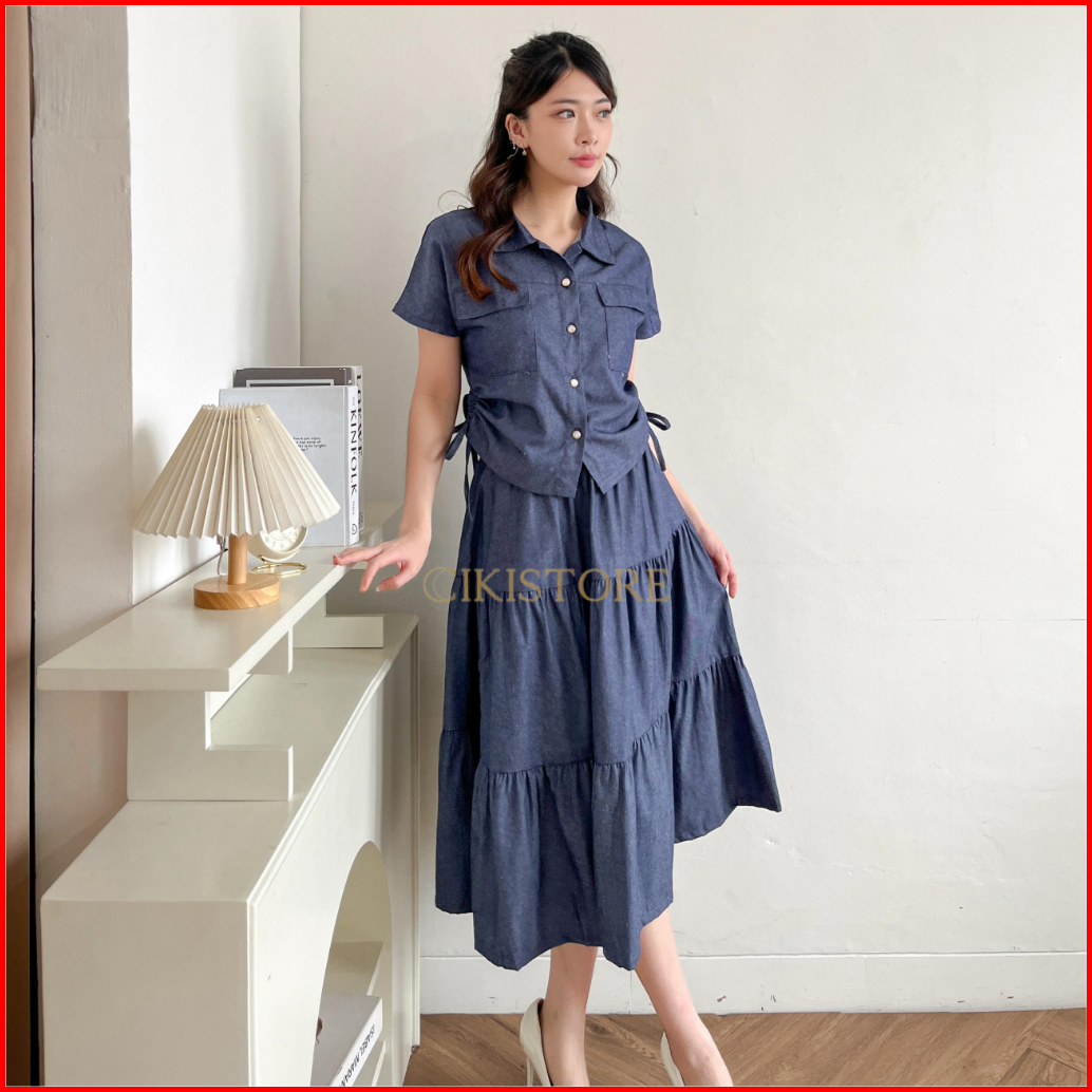 Cikistore Sara Set Wanita Denim Katun Soft Denim Set