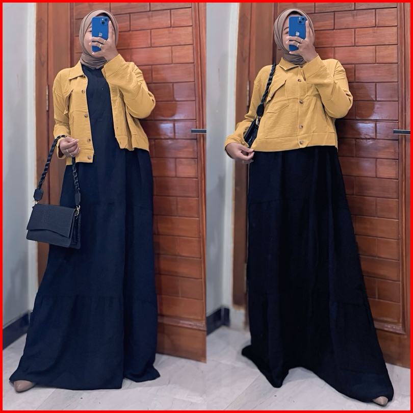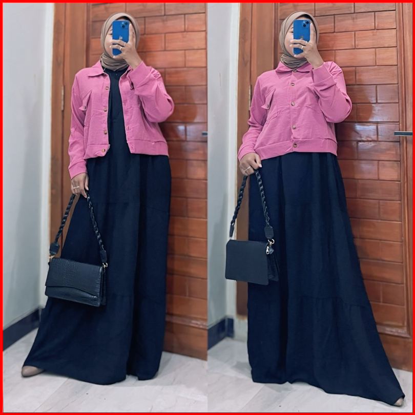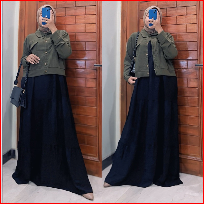 Dieva Set Dress Inner Plus Outer Kemeja Gamis Crinkle Wanita Jumbo Premium