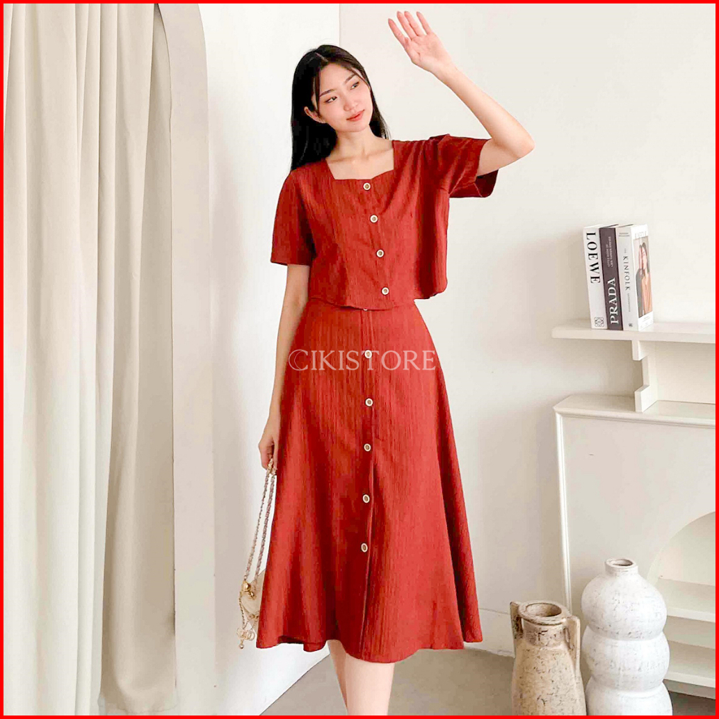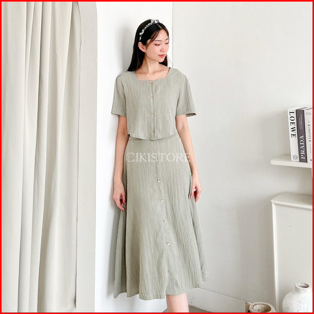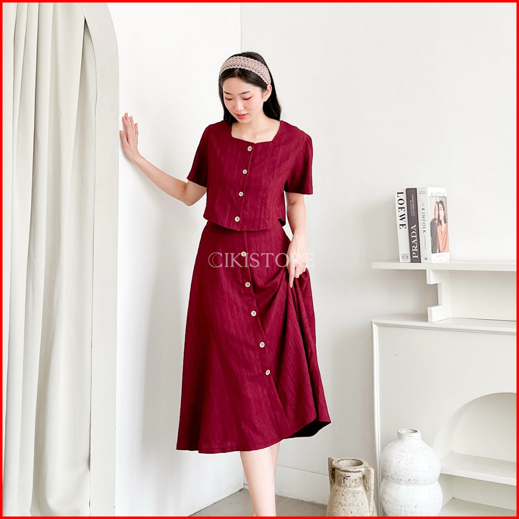 Cikistore - Berlynn Setelan Wanita Casual Satu Set Baju Wanita Atasan Bawahan Lady Crush Premium Simple Elegan