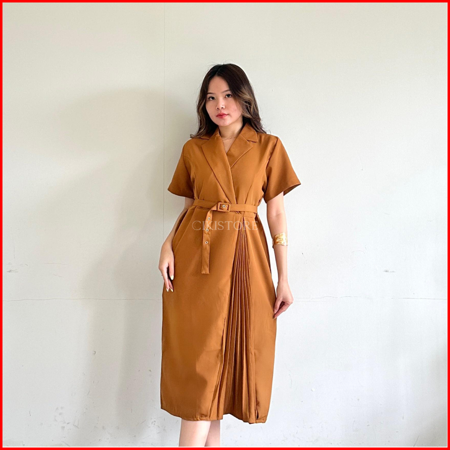 Cikistore - Yikoo Dress Wanita Simple Elegant