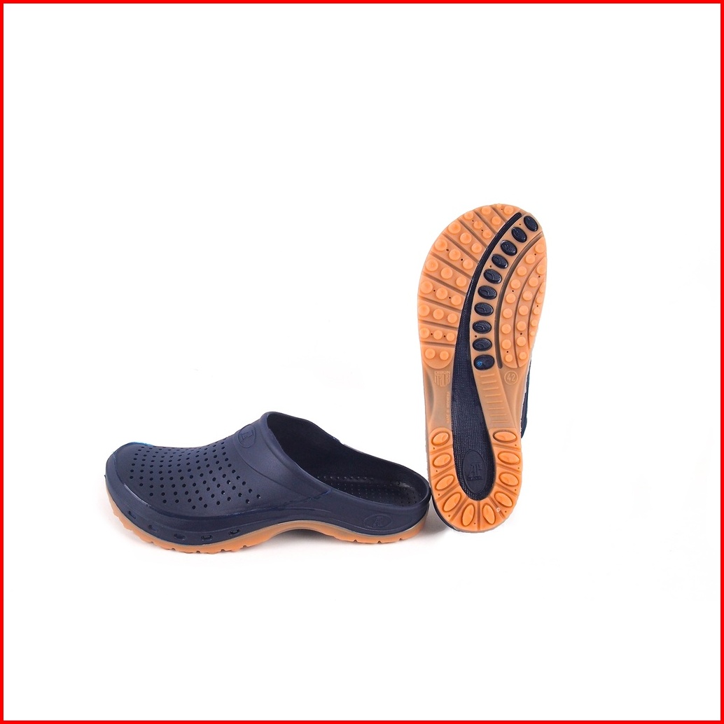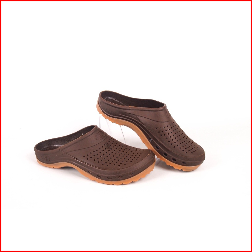 Sandal Slop Ap Clogs Coklat Navy Hitam Karet Lokal Nyaman Ringan Anti Slip Air