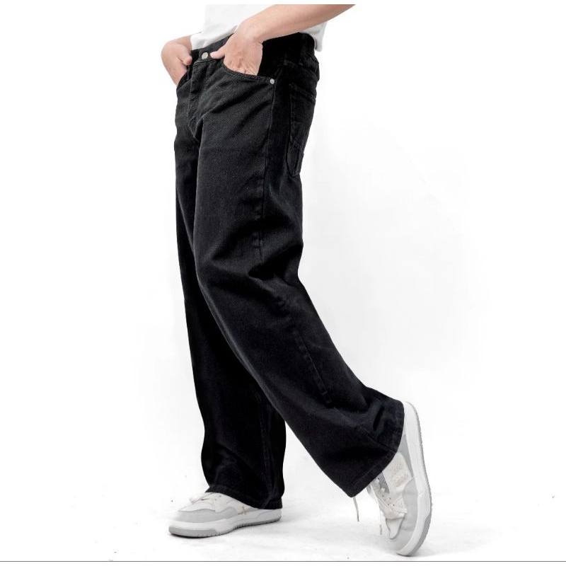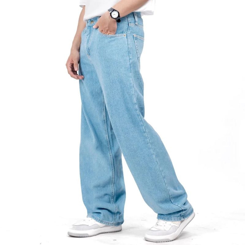 Celana Jeans Pria Baggy Pants Korean Style Oversize Straight Loose Blue Reguler Fit Wide Leg