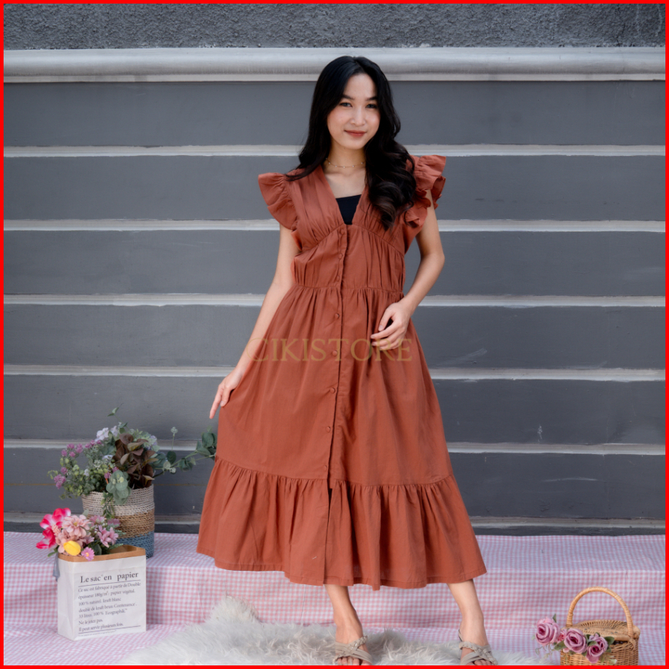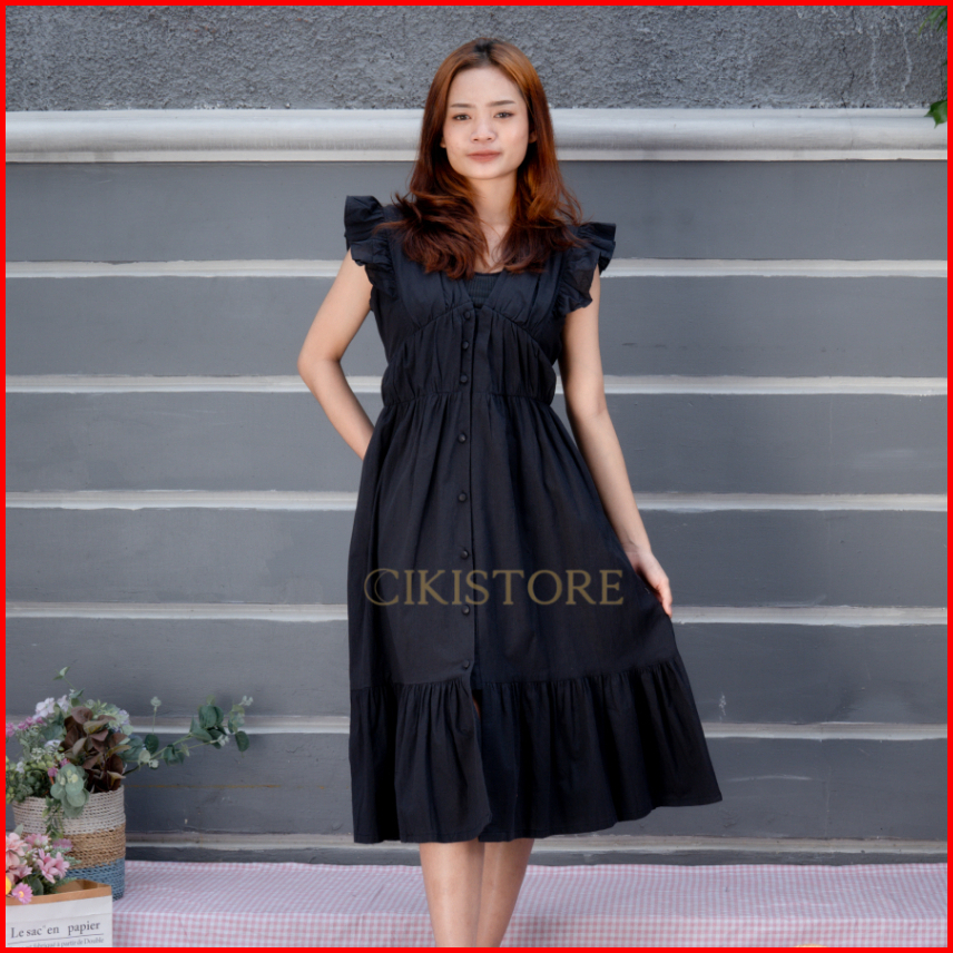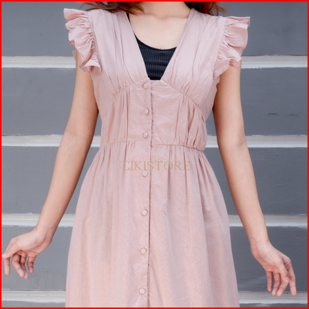 Cikistore - Hailey Dress Dress Wanita Baju Casual Linen Kancing