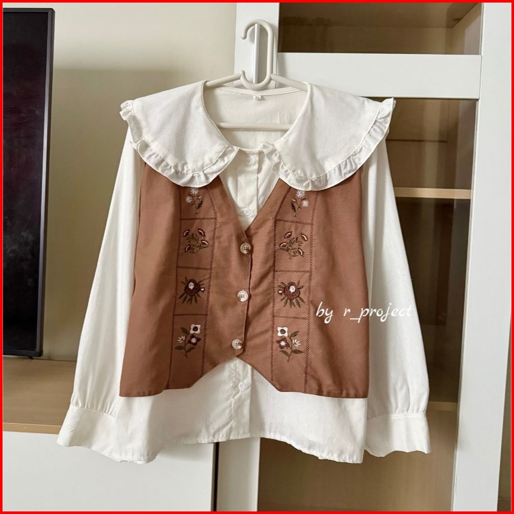 Chacha Embroidery Atasan Rompi Bordir Korean Style Size Xxl Xl L M S Bahan Linen Rami R Project