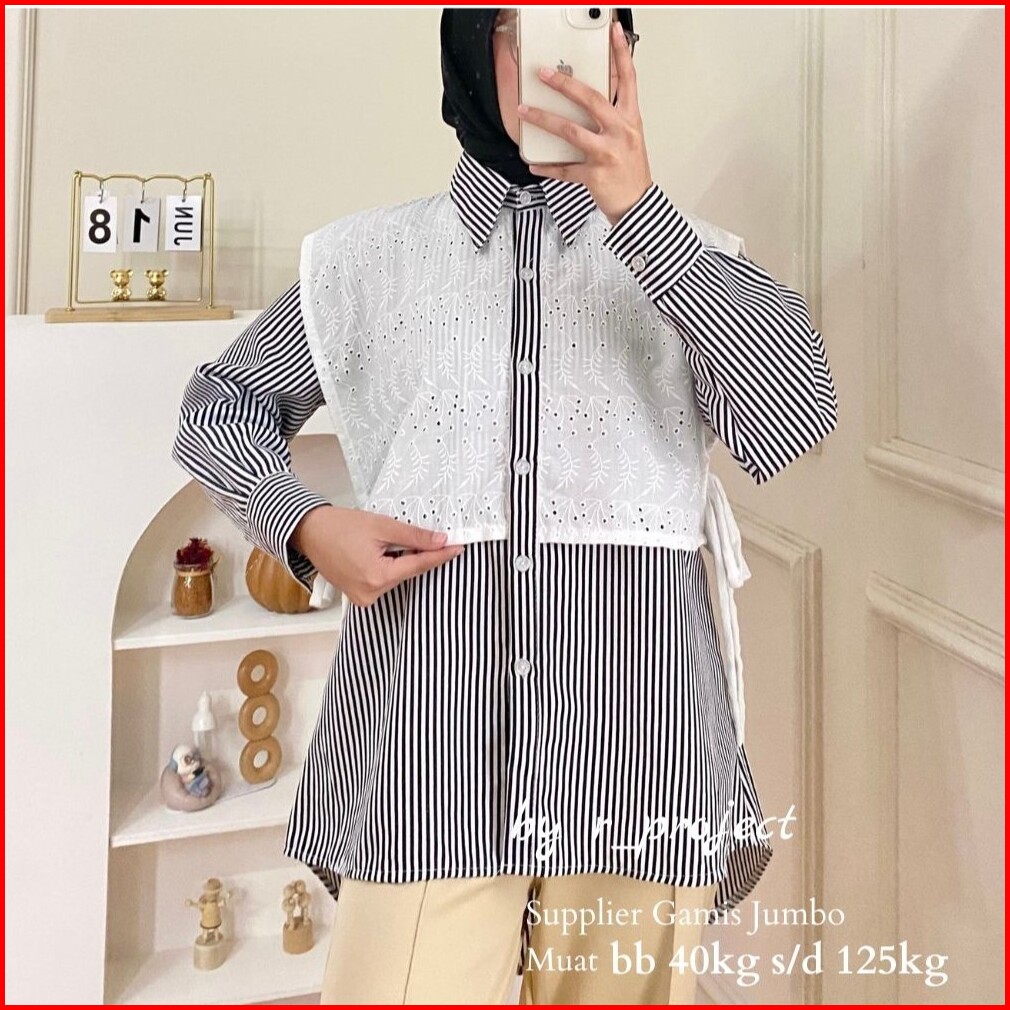 Atasan Kemeja Salur Mix Katun Premium Ld 140 130 120 110 Dst Atasan Kemeja Jumbo Lyora Salur