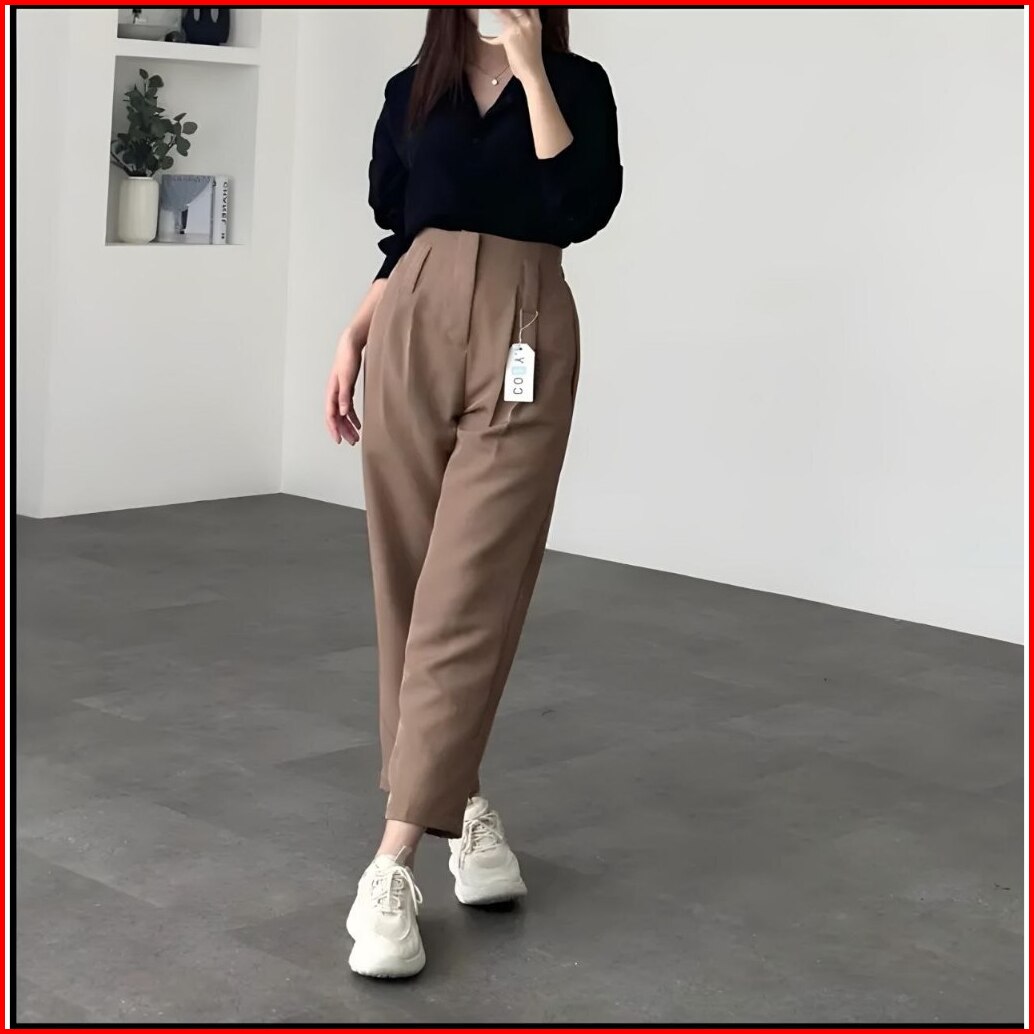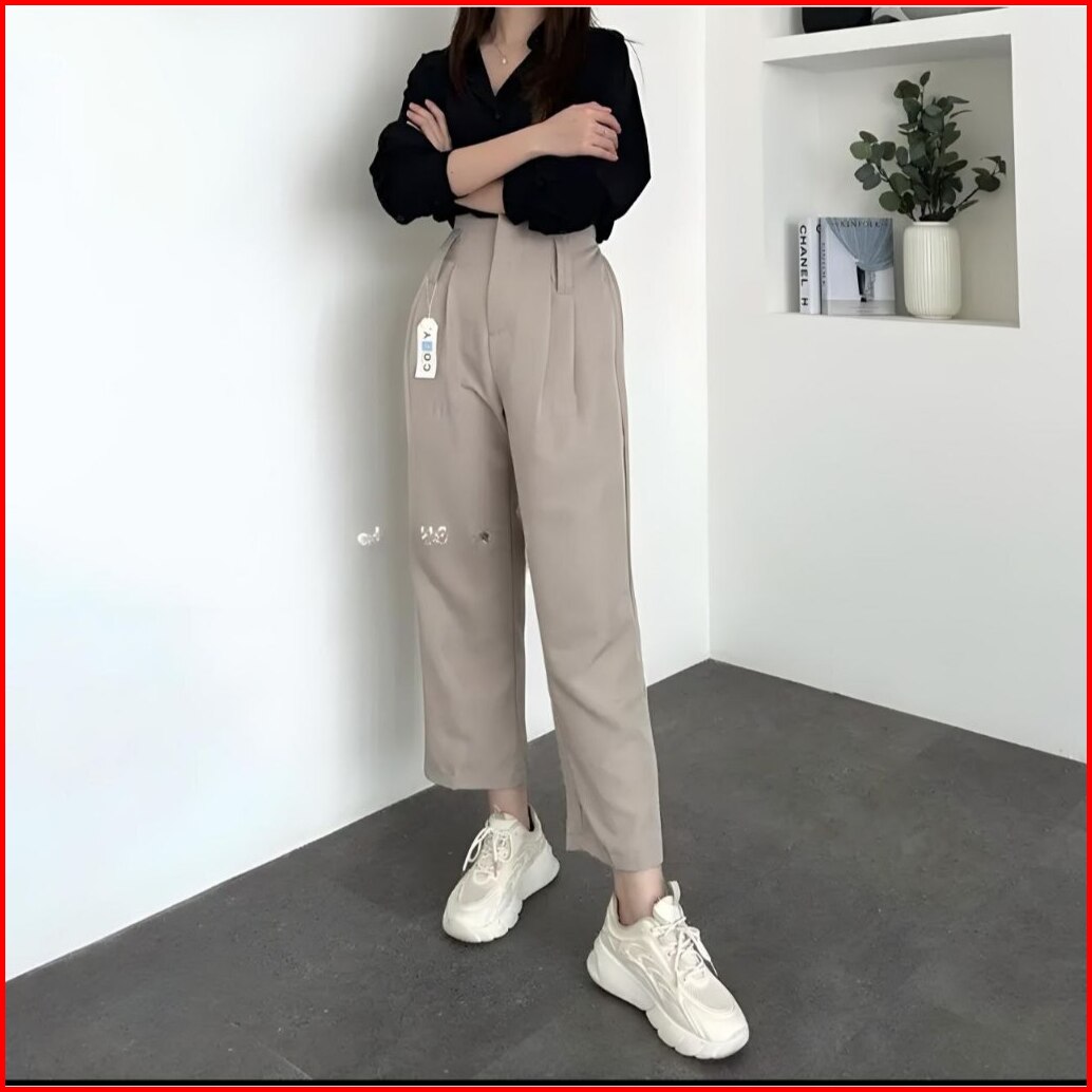 Ankle Loose Pants Wanita Highwaist Baggy Trousers Casual Celana Kantor Kuliah