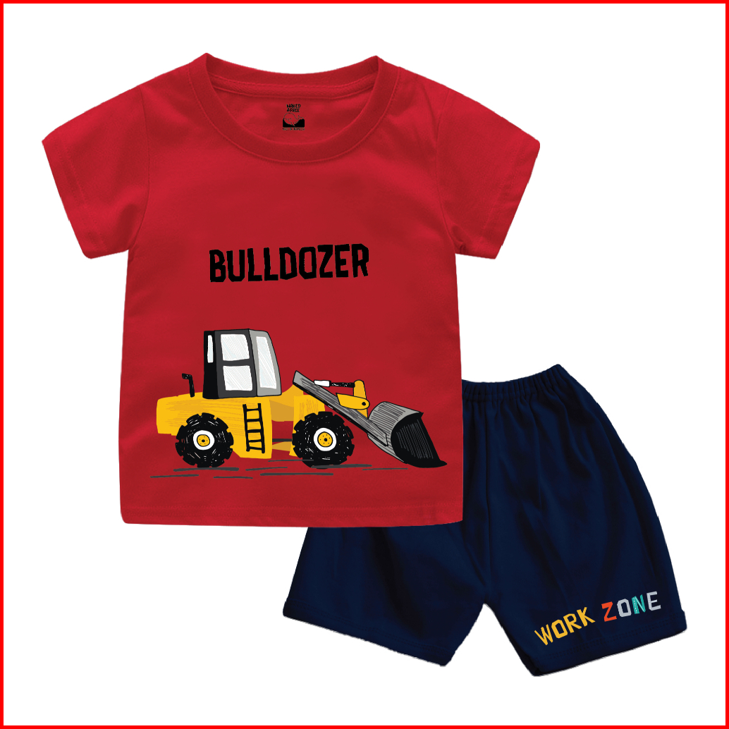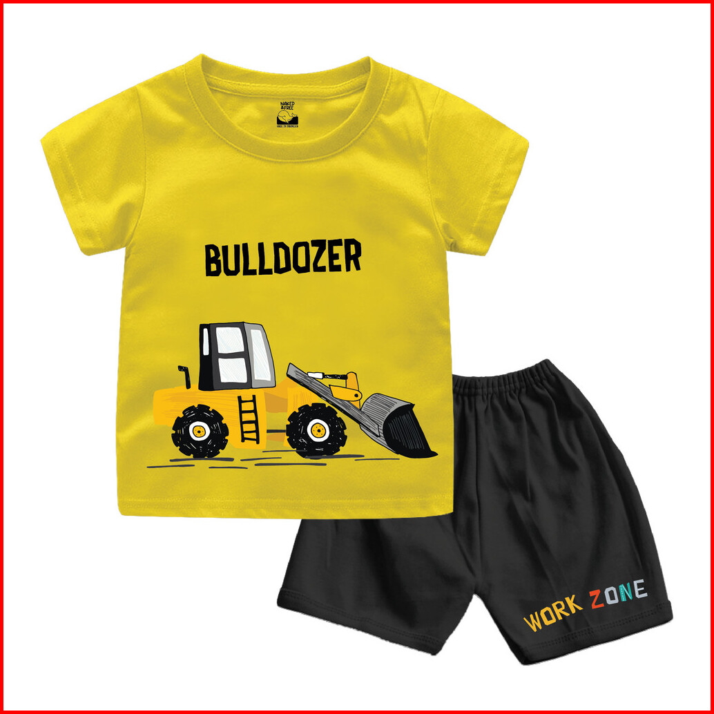 Naked Free Setelan Pendek Bayi Anak Laki-laki Excavator Series Smasher Bulldozer Bahan Katun 30s