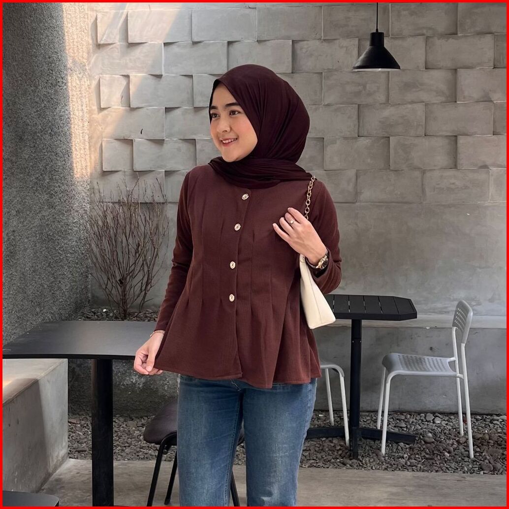 Vana Blouse - Atasan Peplum Fit Body Knit - Blouse Lengan Panjang Wanita