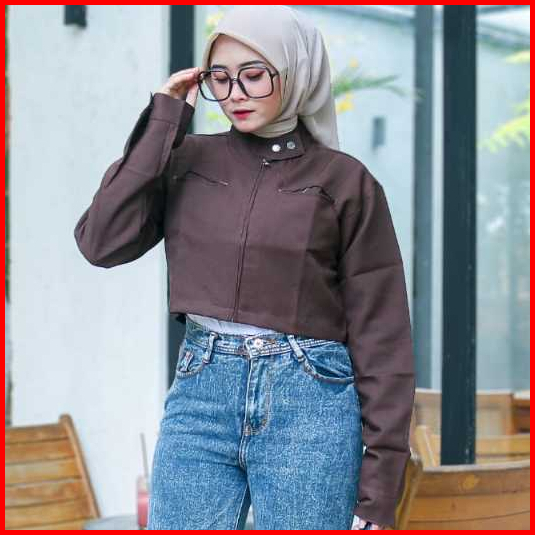 Promo Murah Jaket Crop Wanita Zipper Lengan Panjang Atasan Crop Wanita Bahan Semi Woll Premium