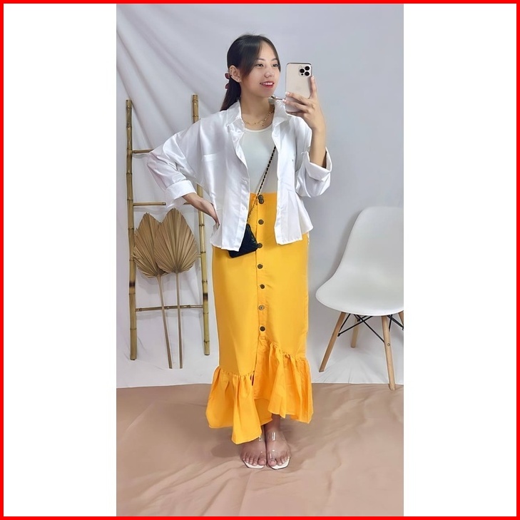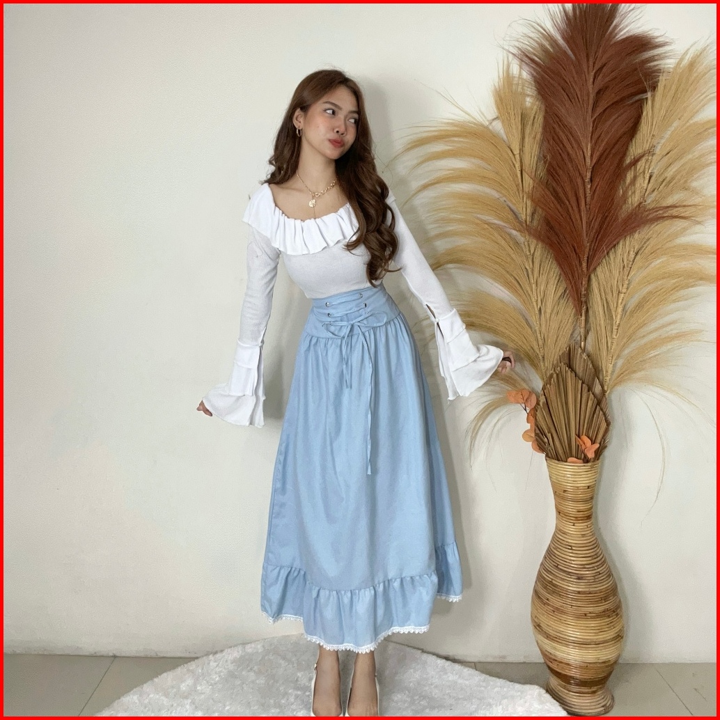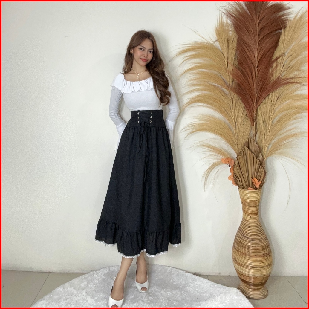 Rx Fashion - Rok Cheryl Skirt Rok Renda Rok Ruffle Kancing Batok Korean Style Rok Tali -pn