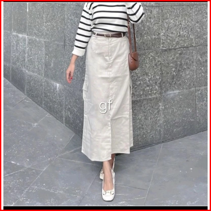Rok Cargo Belah Depan Katun Twill Skirt Ariana