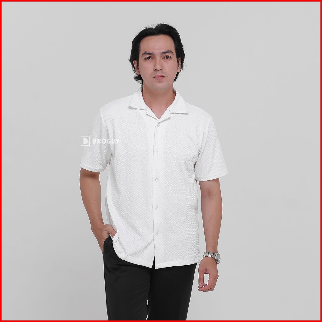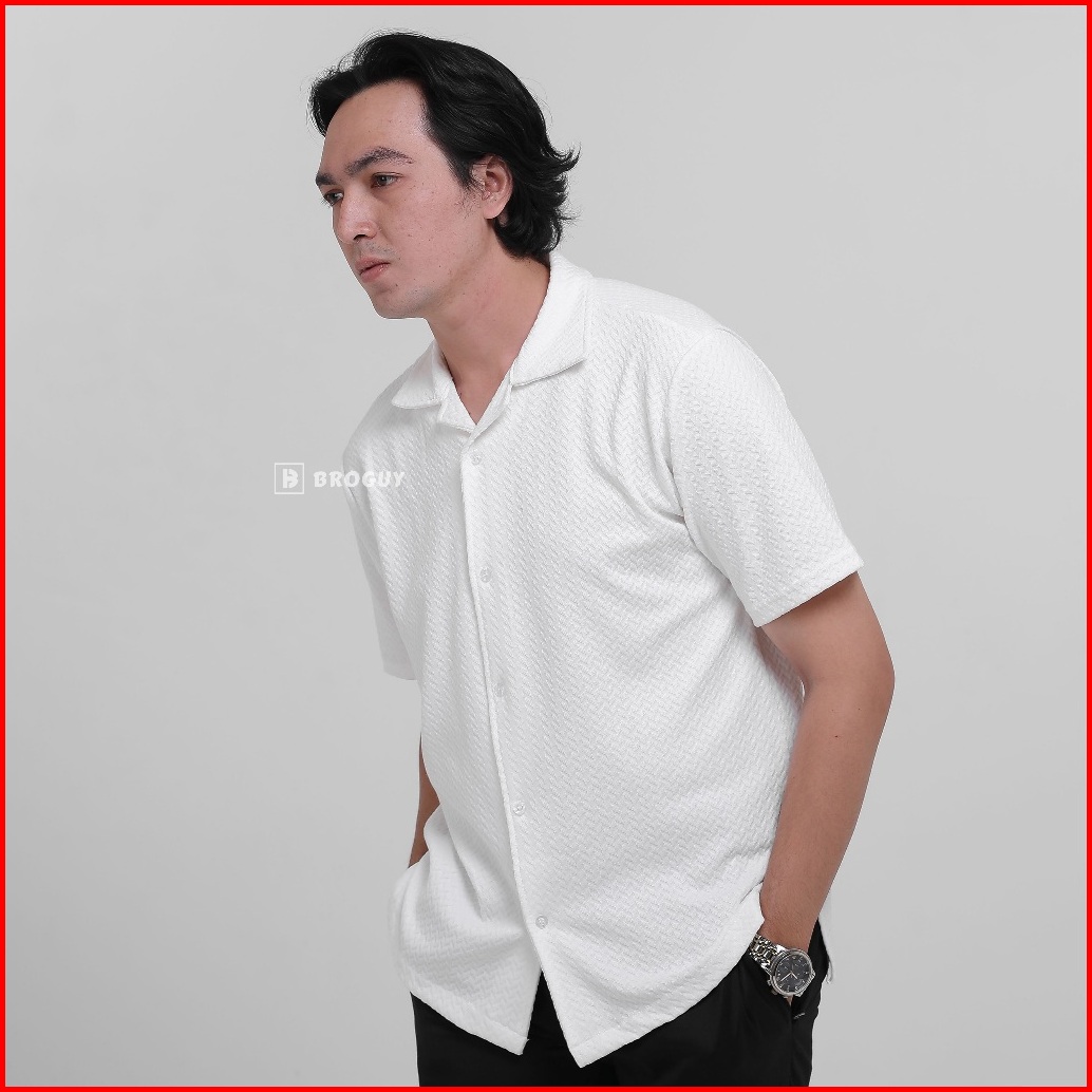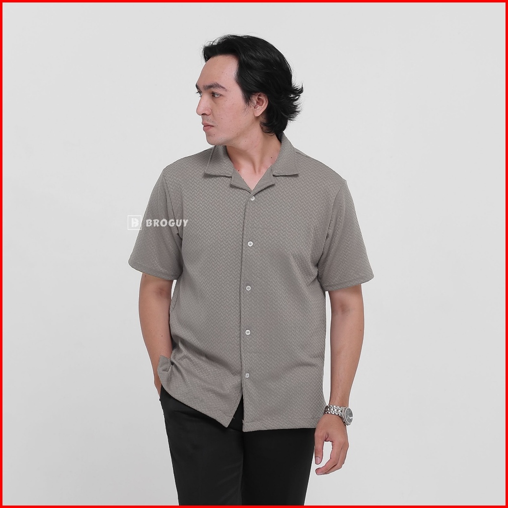 Broguy Kemeja Cuban Shirt Pria Casual Lengan Pendek Stretch