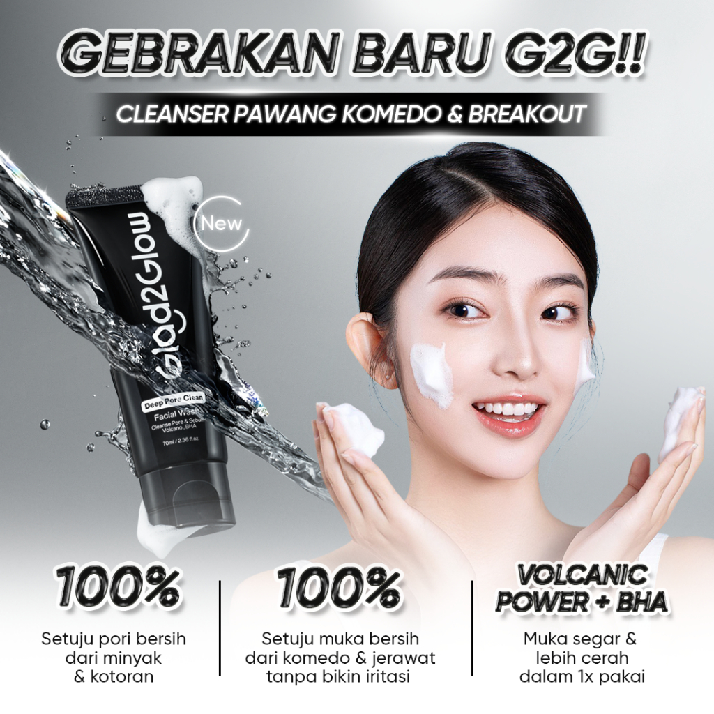 Glad2Glow Volcanic Ash BHA Facial Wash – Yuzu AHA Blackhead Cleanser | Deep Clean Pori & Exfoliating