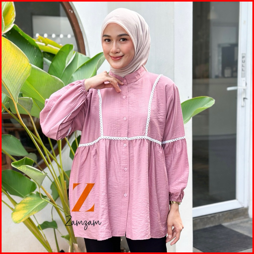 Nabila Blouse Polo Linen Blouse Renda Premium Korea Terbaru Korean Style Blouse Cantik Blouse Viral