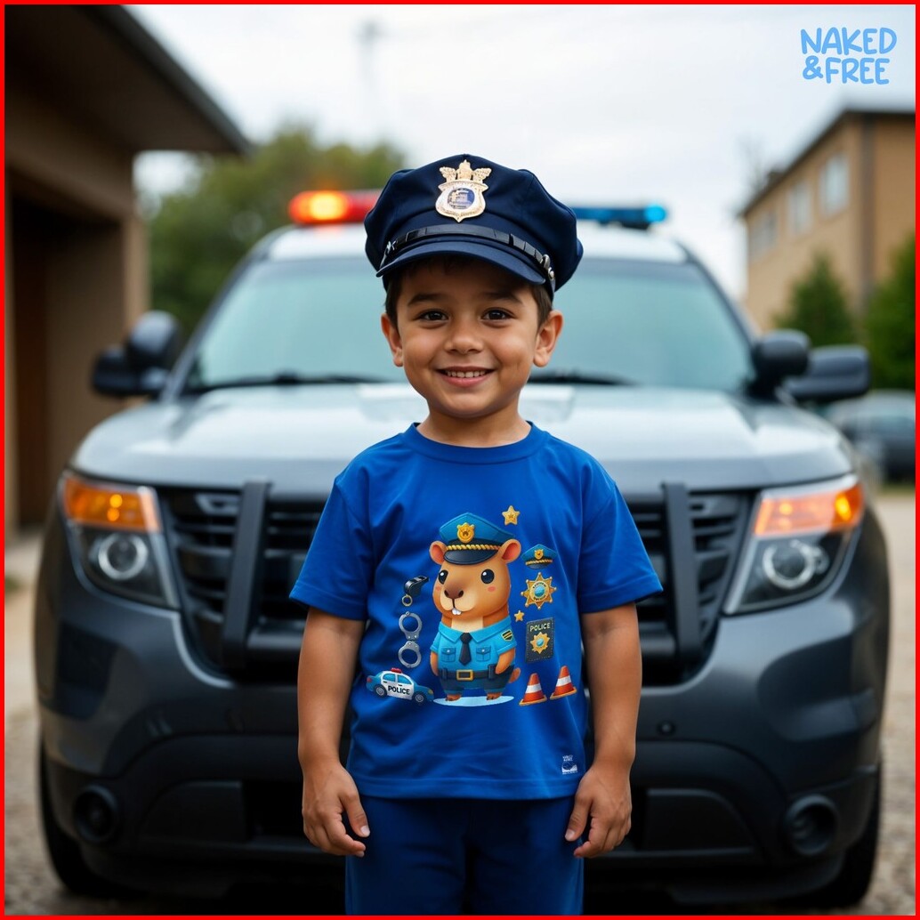 Naked Free Setelan Pendek Bayi Anak Laki-laki Animal Profesi Series General Police Bahan Katun 30s