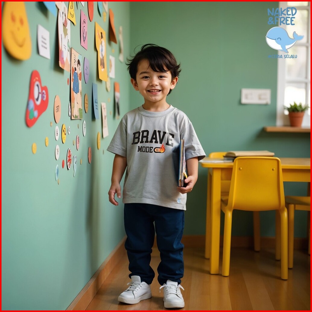Naked Free Baju Kaos Anak Laki-laki Brave Mode On Back To School Katun Combed 30s Bts-1