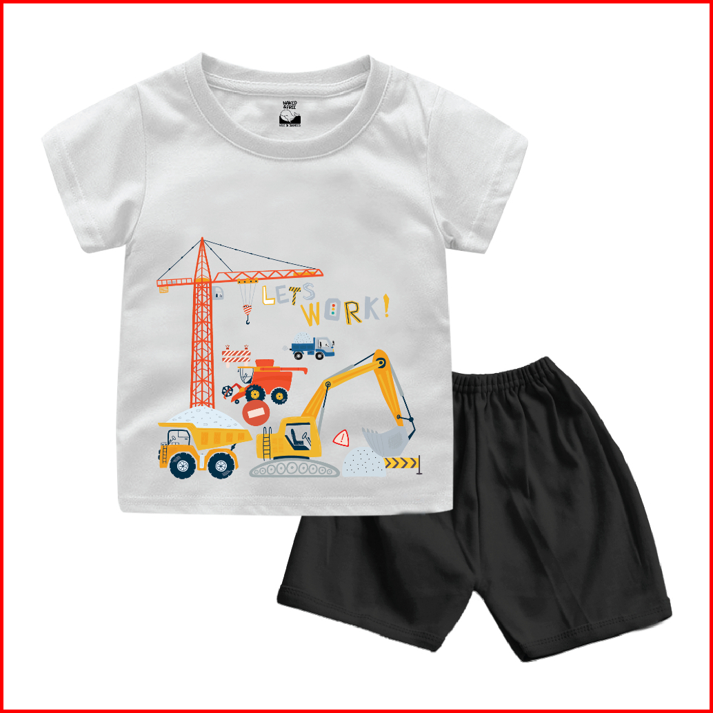 Naked Free Setelan Pendek Bayi Anak Laki-laki Excavator Series Lets Work Bahan Katun 30s