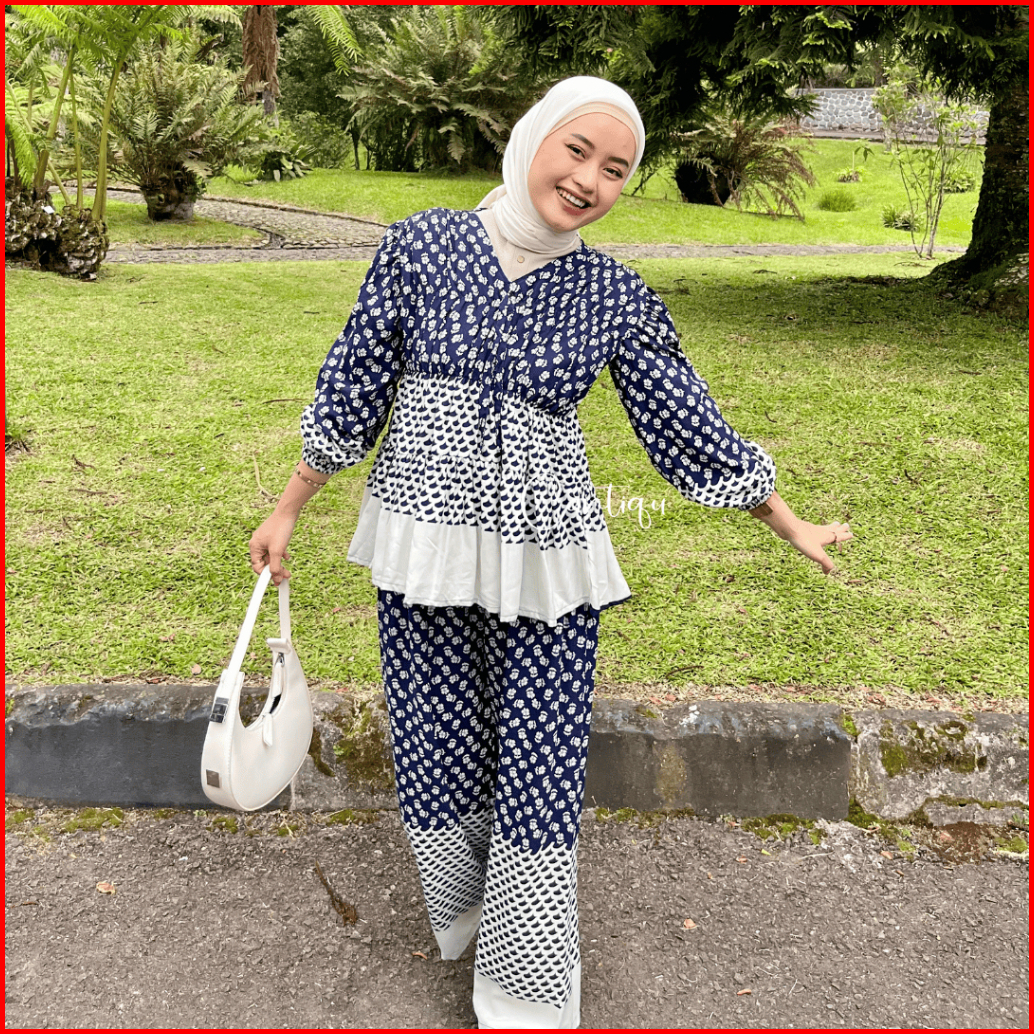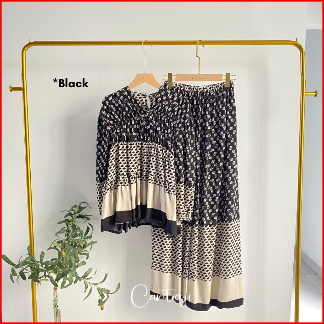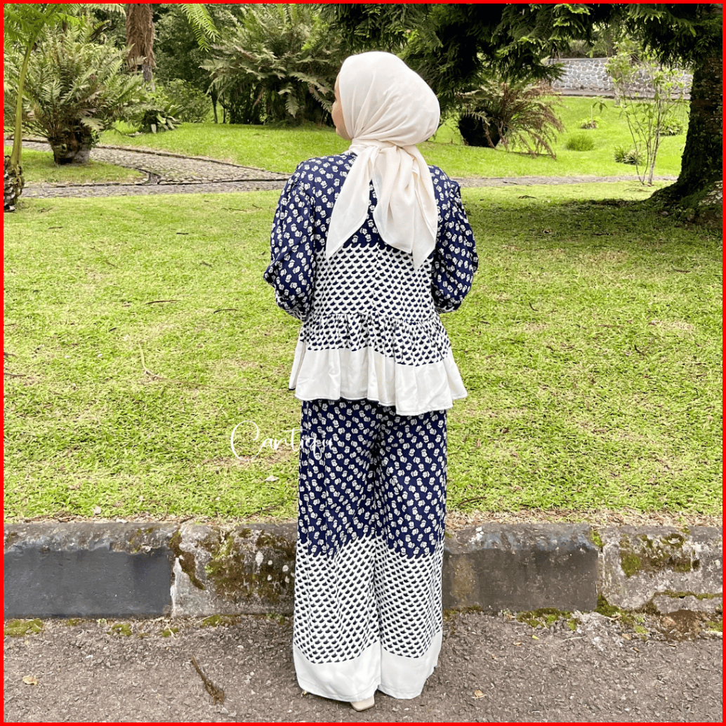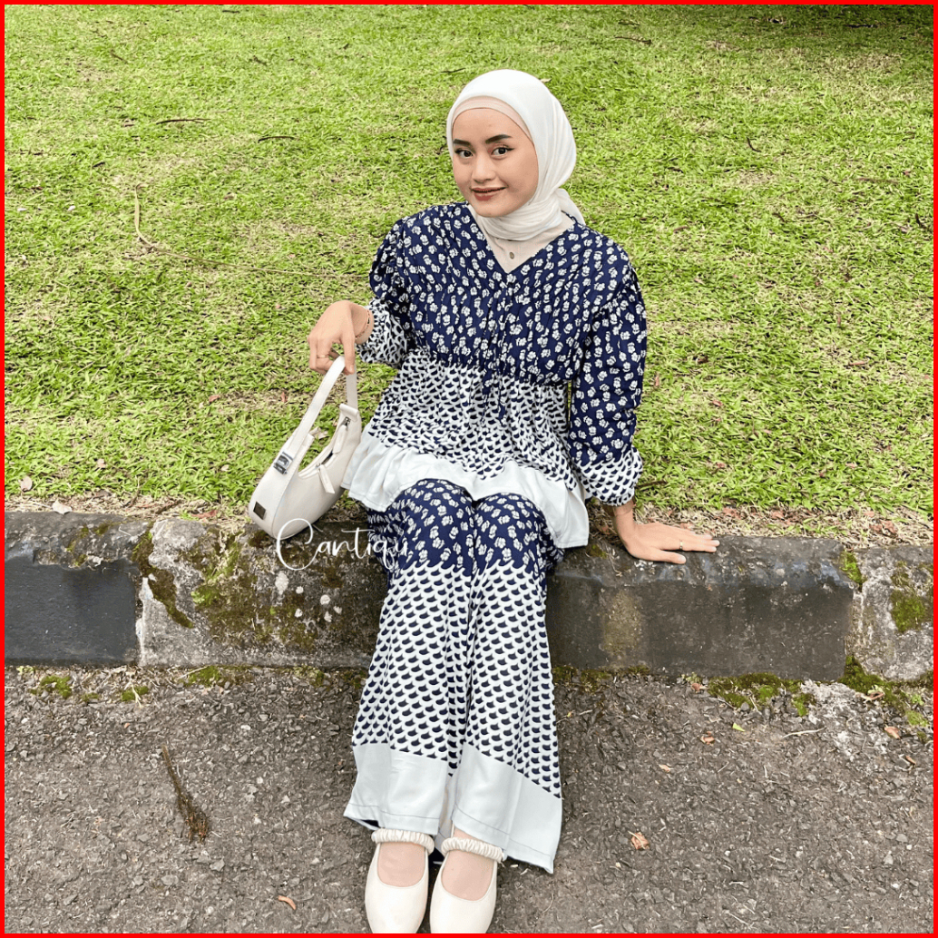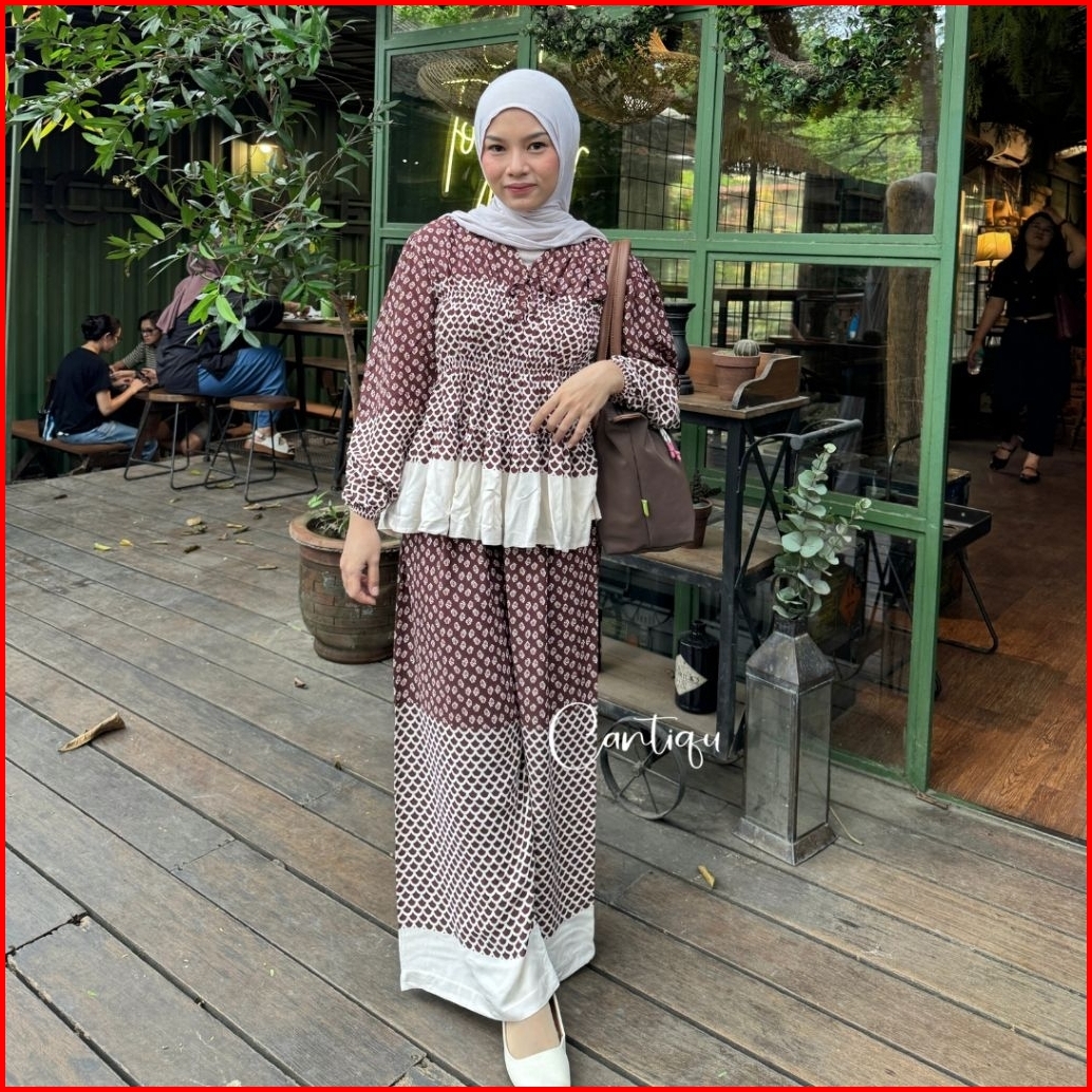 Cantiqu - Oneset Panjang Rayon Motif Sabia Atasan Celana Kulot Wanita